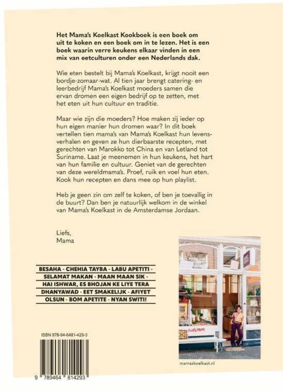 Het Mama’S Koelkast Kookboek Is Een Boek Om Uit Te Koken En Een Boek Om In Te Lezen. Het Is Een Boek Waarin Verre Keukens Elkaar Vinden In Een Mix Van Eetculturen Onder Een Nederlands Dak.Wie Eten Bestelt Bij Mama’S Koelkast, Krijgt Nooit Een Bordje-Zomaar-Wat. Al Tien Jaar Brengt Catering- En Leerbedrijf Mama’S Koelkast Moeders Samen Die Ervan Dromen Een Eigen Bedrijf Op Te Zetten, Met Het Eten Uit Hun Cultuur En Traditie. Maar Wie Zijn Die Moeders? Hoe Maken Zij Ieder Op Hun Eigen Manier Hun Dromen Waar? In Dit Boek Vertellen Tien Mama’S Van Mama’S Koelkast Hun Levensverhalen En Geven Ze Hun Dierbaarste Recepten, Met Gerechten Van Marokko Tot China En Van Letland Tot Suriname. Laat Je Meenemen In Hun Keukens, Het Hart Van Hun Familie En Cultuur. Geniet Van De Gerechten Van Deze Wereldmama’S. Proef, Ruik En Voel Hun Eten. Kook Hun Recepten En Dans Mee Op Hun Playlist.Heb Je Geen Zin Om Zelf Te Koken, Of Ben Je Toevallig In De Buurt? Dan Ben Je Natuurlijk Welkom In De Winkel Van Mama’S Koelkast In De Amsterdamse Jordaan. Liefs, Mamabesaha – Chehia Tayba – Labu Apetiti – Selamat Makan – Maan Maan Sik – Hai Ishwar, Es Bhojan Ke Liye Tera Dhanyawad – Eet Smakelijk – Afiyet Olsun – Bom Apetite – Nyan Switi!