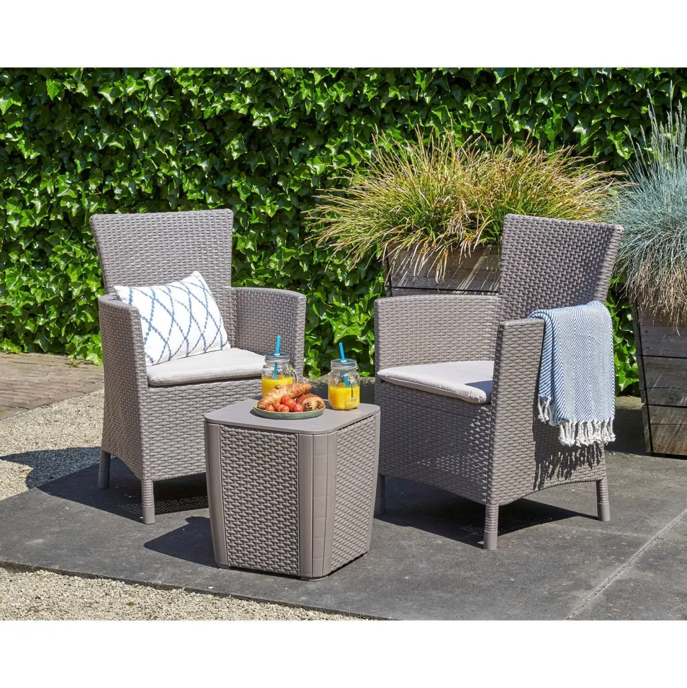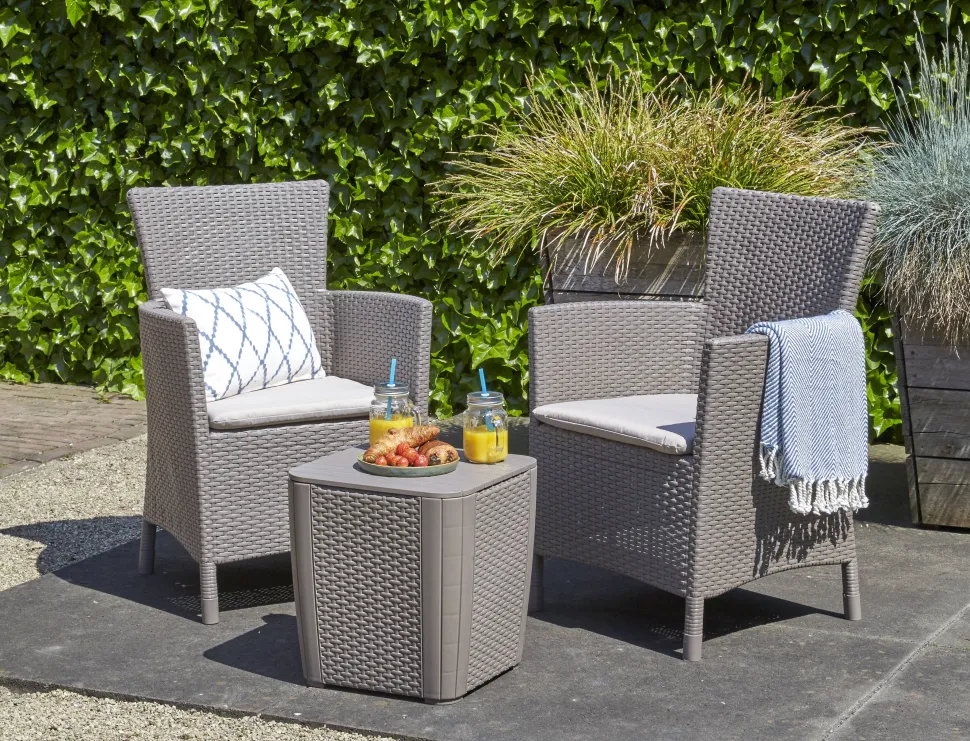 Stel Je Eens Voor Dat Je Elke Zonnige Dag Begint Met Het Genieten Van Een Cappuccino Met Je Allibert Iowa Balkonset. Deze Compacte Set Bestaat Uit Twee Stoelen En Een Luzon Opbergtafel. De Stoelen Zijn Voorzien Van Comfortabele Kussens En Prachtig Ontworpen Ergonomische Rugleuning En Armleuningen Voor Optimaal Zitcomfort, En De Luzon Opbergtafel Is Heel Handig Om Boeken, Een Plaid, Tijdschriften Of Andere Spullen Netjes In Op Te Bergen. De Tafel Kan Ook Worden Gebruikt Als Een Zitplaats Voor Een Volwassene, Wat Erg Handig Is Als Je Bezoek Hebt.