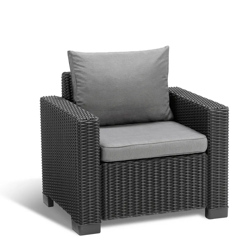 Relax En Ontspan Van ‘S Morgens Vroeg Tot ‘S Avonds Laat, Relax Met Al Het Comfort Van De California Stoel. Het Ronde Vlechtwerk Ontwerp En De Extra Brede Armleuningen Samen Met De Zit- En Rugkussens Maken Deze Loungestoel Perfect Om In Weg Te Zakken Tijdens Lange Zomerdagen. En Omdat Deze Is Gemaakt Van Weerbestendige Kunststof Met Uv-Bescherming, Kan Je Nog Vele Seizoenen Van Deze Tuinstoel Genieten, Vrijwel Onderhoudsvrij.