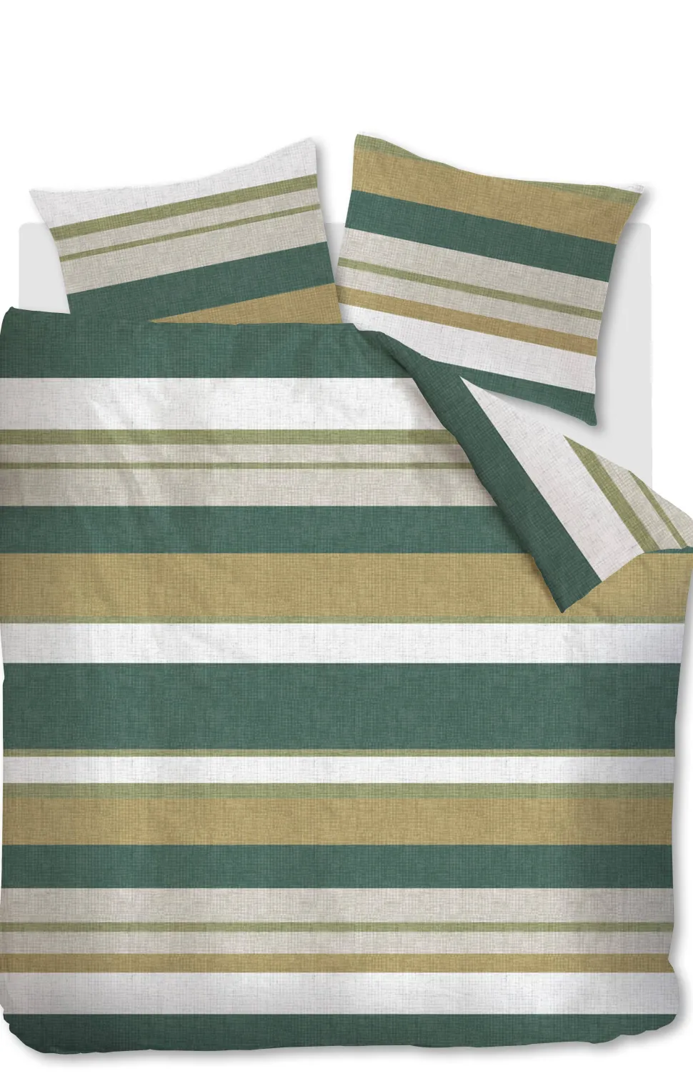 Dekbedovertrek Dani Van Ambiante Heeft Een Landelijk En Tijdloos Dessin Met Horizontale Strepen. Het Overtrek Heeft Smalle En Brede Strepen In Frisse Blauwe Kleuren. De Print Heeft Een Grove Weefselstructuur. De Kussenslopen Hebben Elk Een Ander Dessin In Dezelfde Opvallende Kleuren. Dit Geeft Het Overtrek Een Speels Effect.