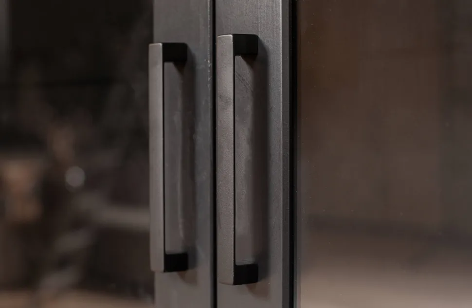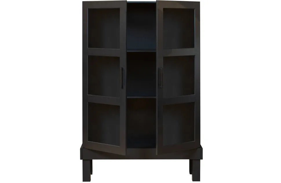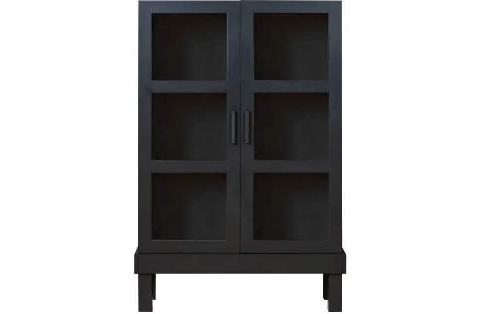 Bonk Is Een Eigentijdse, Stoere Vitrinekast Uit De Collectie Van Het Nederlandse Merk Whitelabel. Deze Vitrinekast Is Vervaardigd Uit Grenenhout, Fsc Gecertificeerd, En Heeft Een Stoere Mat Zwarte Kleur Gekregen. Bonk Is Voorzien Van 3 Legplanken, Waardoor Deze Kast Genoeg Ruimte Biedt Om Accessoires Te Plaatsen. Deze Legplanken Bevinden Zich Achter Twee Deuren, Per Deur Voorzien Van 3 Glazen Ruiten. De Deuren Zijn Voorzien Van Een Stoere, Zwarte Metalen Greep. Door Het Tijdloze Design Past Deze Kast In Ieder Interieur Thuis.