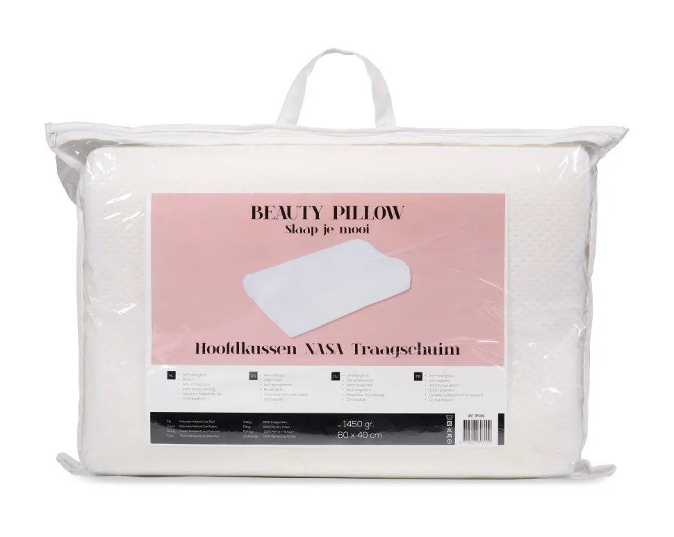 Dit Luxe Beauty Pillow Hoofdkussen Nasa Traagschuim Is Gevuld Met 100% Traagschuim. Door Het Traagschuim Vormt Het Hoofdkussen Zich Naar De Natuurlijke Vorm Van Het Hoofd En De Nek En Zorgt Hierdoor Voor Een Perfecte Ondersteuning. Het Zorgt Voor Balans Voor De Nek, Hals En Ruggengraat, Zodat Je In Een Goede Houding Ligt En Daardoor Uitgerust Wakker Wordt.