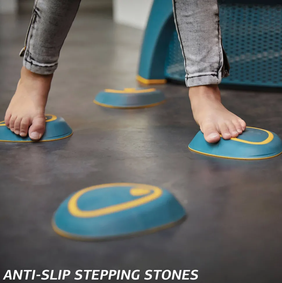 De Peutertrampoline Wordt Inclusief 6 Anti-Slip Stapstenen Geleverd. Met Deze Stapstenen Wordt Je Kindje Uitgedaagd Om Lekker Te Spelen En Bewegen Op Diverse Manieren. Er Kunnen Torens/Stapels Mee Gebouwd Worden. De Stapstenen Zijn Ook Magnetisch En Kunnen Aan De Zijkant Van De Trampoline Geplaatst Worden. Ook Kan Er Samen Gespeeld Worden Door Een Pad Van Stenen Achter Elkaar Te Creeren En Het Parcours Af Te Leggen. Zo Kan De Balans Op Een Leuke Manier Ontwikkeld Worden.