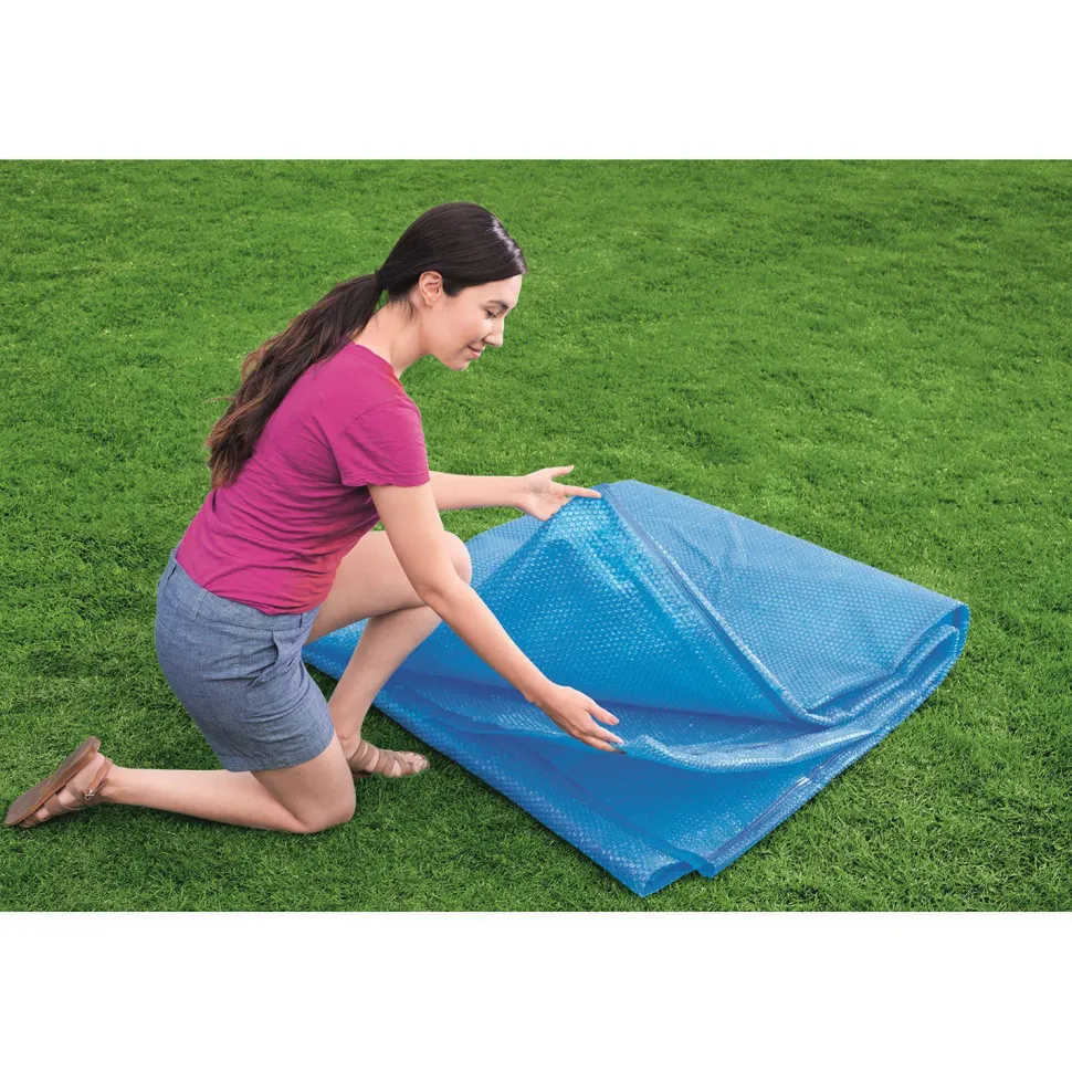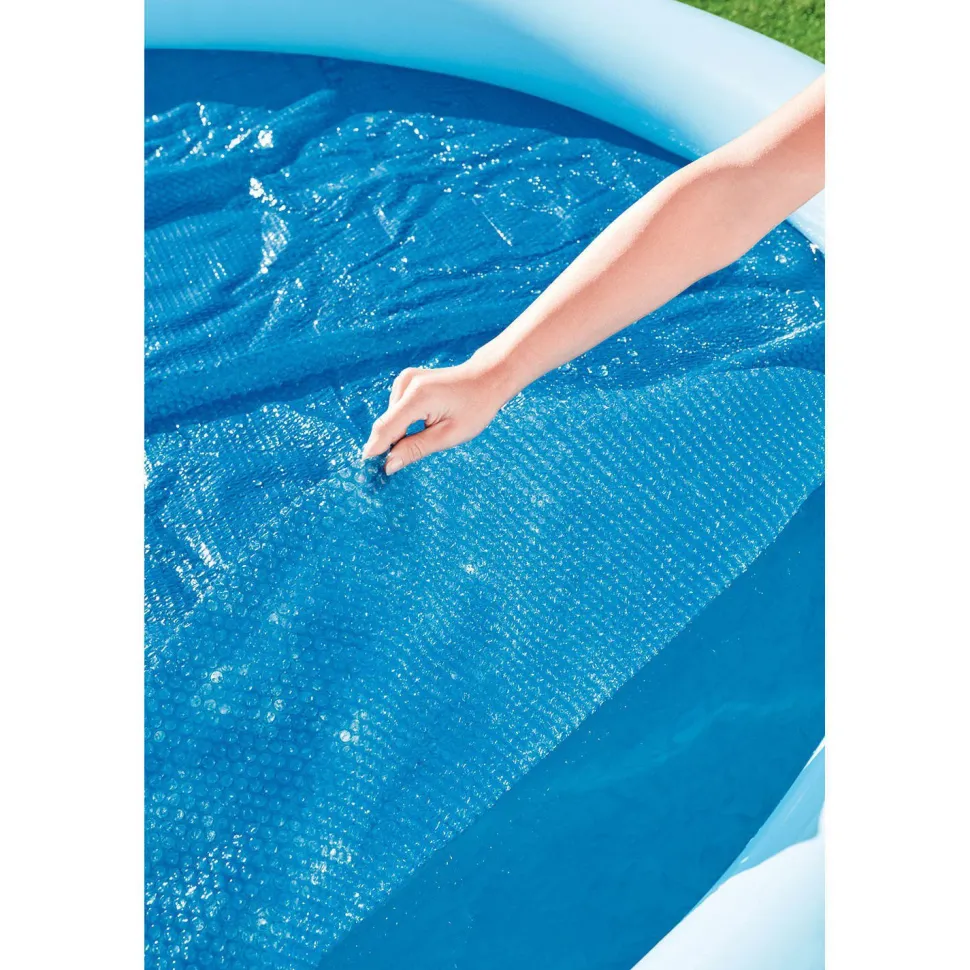 De Bestway Solar Pool Cover Is Iets Kleiner Dan Het Zwembad Zodat Overtollig Water Af Gevoerd Kan Worden. Het Bestway Solar Zwembad Afdekzeil Zorgt Voor Warmteisolatie En Gaat Vervuiling Van Het Zwemwater Tegen.