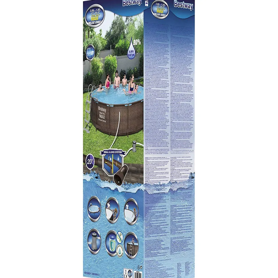 Het Sterke Roestbestendige Stalen Frame Is Voorzien Van Het Framelink Systeem, Door De Op Maat Gemaakte T-Connectoren Wordt Metaal Op Metaal Corrosie Voorkomen. Het Seal En Lock Systeem Zorgt Voor Een Sterke Buisverbinding. De Wanden Van Het Ronde Rotan Look Bestway Zwembad Zijn Gemaakt Van Uiterst Duurzaam Duraplus, Een Materiaal Versterkt Met Polyester Mesh Kern En Twee Lagen Hoogwaardig Pvc.