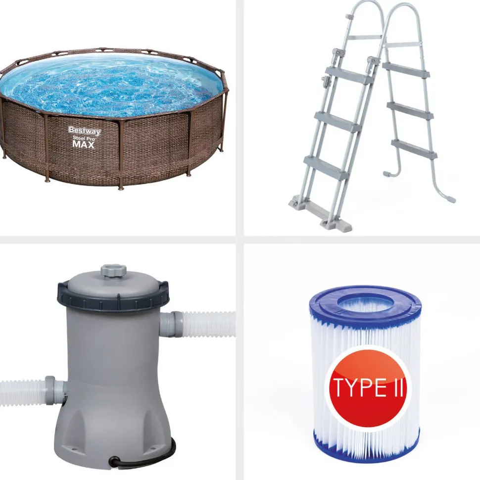 Dit Bestway Steel Pro Max Ronde Frame Zwembad Wordt Geleverd Met Filterpomp, Trap En Reparatie Kit.