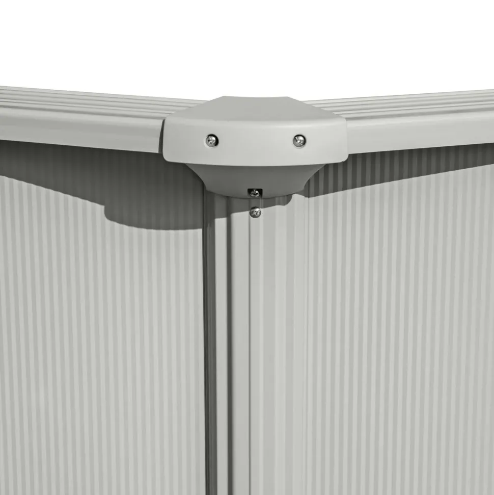Hydrium 360 Is Een Rond Stalenwand Bad Met Zandfilter. Wanden Van Versterkt Staal Met Een Prismatische Kiezelprint Liner Van Pvc 30/100 Bieden Comfort En Stevigheid. Dit Solide Bad Heeft Verder Nog Een Extra Rand Van 16 Cm Rondom Ter Versteviging. Geintegreerde Skimmer. Het Bad Kan Het Hele Jaar Door Blijven Staan, Mits De Voorschriften Goed Worden Nagevolgd. Luxe Set Met Zandfilter 3,0 M³/U, Grondkleed, Cover, Chemconnect En Trap. Watercapaciteit: 10.990 Liter. Afmeting: O 360X120 Cm.