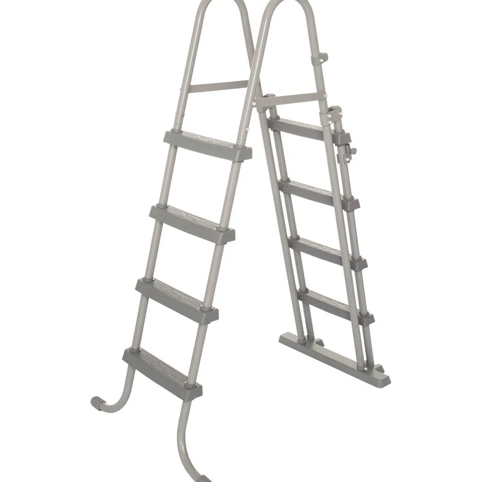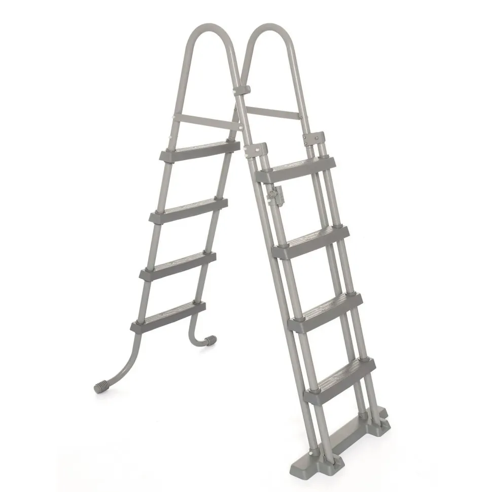 Deze Bestway Zwembadtrap Is Geschikt Voor Bovengrondse Zwembaden Met Een Maximale Hoogte Van 122 Cm. De Trap Is Gemaakt Van Roestbestendig Metaal En Heeft 2 X 3 Stevige Kunststof Antislip Treden, Zodat Je Veilig En Makkelijk In En Uit Je Bovengrondse Zwembad Komt. De Bestway Zwembad Trap Kan Omhoog Gezet Worden Om Te Voorkomen Dat Kinderen Zonde Toezicht Het Zwembad In Kunnen. De Zwembad Trap Is Eenvoudig In Elkaar Te Zetten En Dus Snel Klaar Voor Gebruik.