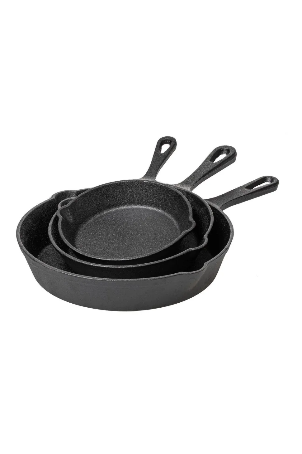 Met Deze Gietijzeren Koekenpannen Van Blackwell Ben Je Voorbereid Op Elke Actie In De Keuken! De Pannenset Bestaat Uit 3 Koekenpannen In Verschillende Formaten. Dankzij Het Gietijzer Van Blackwell Zijn De Pannen Niet Kapot Te Krijgen. Weet Je Wat Ook Handig Is? De Twee Schenktuiten Aan De Zijkanten, Hierdoor Heb Je Geen Opscheplepel Meer Nodig!