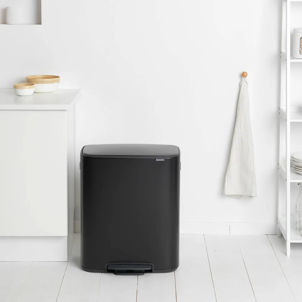 Op Zoek Naar Een Stijlvolle Afvaloplossing Voor Je Huishouden? Ontdek De Modieuze Brabantia Bo Pedaalemmer. Een Pedaalemmer Die Zo Mooi En Handig Is, Dat Je Met Speels Gemak Je Afval Scheidt. Dankzij Twee Losse Binnenemmers Van 30 Liter Kan Bo 2 Soorten Afval Aan. Maar Bo Is Meer Dan Mooi. Deze Design Prullenbak Past Perfect Tegen Een Muur Of (Keuken)Kast En Spaart Dus Ruimte. Het Geurdichte Deksel Opent Bij Een Licht Tikje Met Je Voet En Blijft Open Zo Lang Als Je Wilt. En Daarna Sluit Het Fluisterzacht Dankzij De Soft-Close Techniek. De Anti-Slip Bodem Beschermt De Vloer En Houdt De Afvalemmer Op Zijn Plaats.