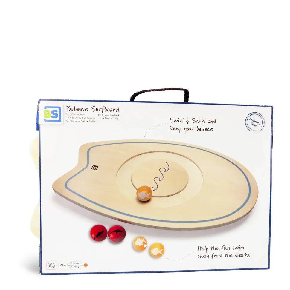 Het Balans Surfbord Van Bs Toys Helpt Kinderen Hun Evenwicht Te Bewaren Tijdens Het Spelen. Laat Ze De Vissen Helpen Om Weg Te Zwemmen Van De Haai. Terwijl Ze Hun Evenwicht Proberen Te Houden, Rollen De Ballen Op Het Bord Zonder Dat Ze Eruit Vallen.