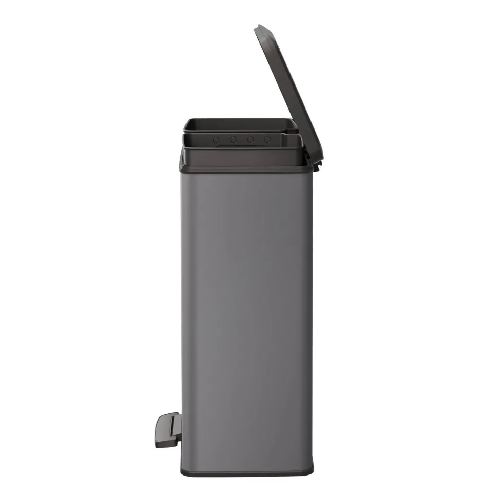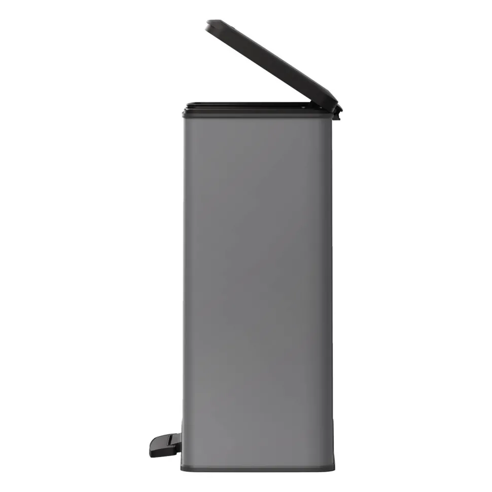 Deze Rechthoekige Afvalbak Is Een Comfortabel Recycling Systeem. Het Heeft Twee Binnenemmers Met Elk Een Inhoud Van 26 Liter. Naast Dat Deze Pedaalemmer Gemaakt Is Van Min. 70% Gerecycled Kunststof Is Hij Niet Enkel Duurzaam, Maar Ook Erg Functioneel Met Zijn Soft Close Mechanisme Waardoor Het Deksel Geruisloos Sluit En Een Comfortabel Pedaal, Waardoor De Prullenbak Hygienisch En Gemakkelijk In Gebruik Is. Deze Prullenbak Komt Met Een Garantie Van 5 Jaar Die Staat Voor Kwaliteit En Duurzaamheid. Gebruik Voor Deze Prullenbak Extra Lange Afvalzakken Zodat Ze Perfect In De Binnenemmers Passen.