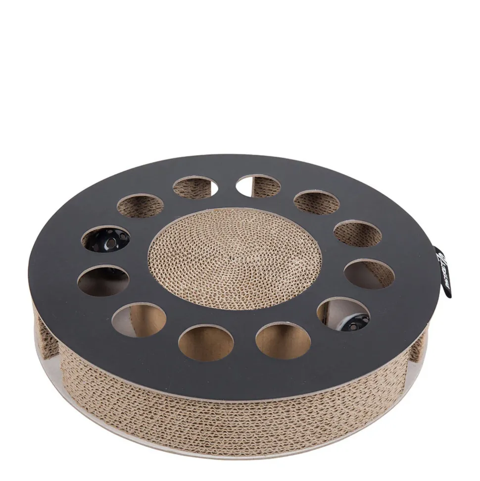 Het Draait Rond, Maakt Geluid En Het Is Gemaakt Van Karton, Kortom Alle Ingredia«Nten Voor Jouw Kat Om Er De Hele Dag Mee Te Spelen! Waar Het Duurzame Golfkarton Jouw Kat Helpt Om Zijn Nagels In Goede Conditie Te Houden, Is Het Meest Opwindende Deel Van Deze Whirl Binnenin Te Vinden: Een Onweerstaanbaar Balletje Gevuld Met Een Rinkelend Belletje. Jouw Kat Zal Zijn Uiterste Best Doen Om Dit Balletje Te Pakken Te Krijgen. Door Middel Van De 12 Ronde Openingen Bovenop De Whirl Kan Jouw Kat Zijn Pootjes Door De Gaten Steken Om Het Balletje Te Bereiken.