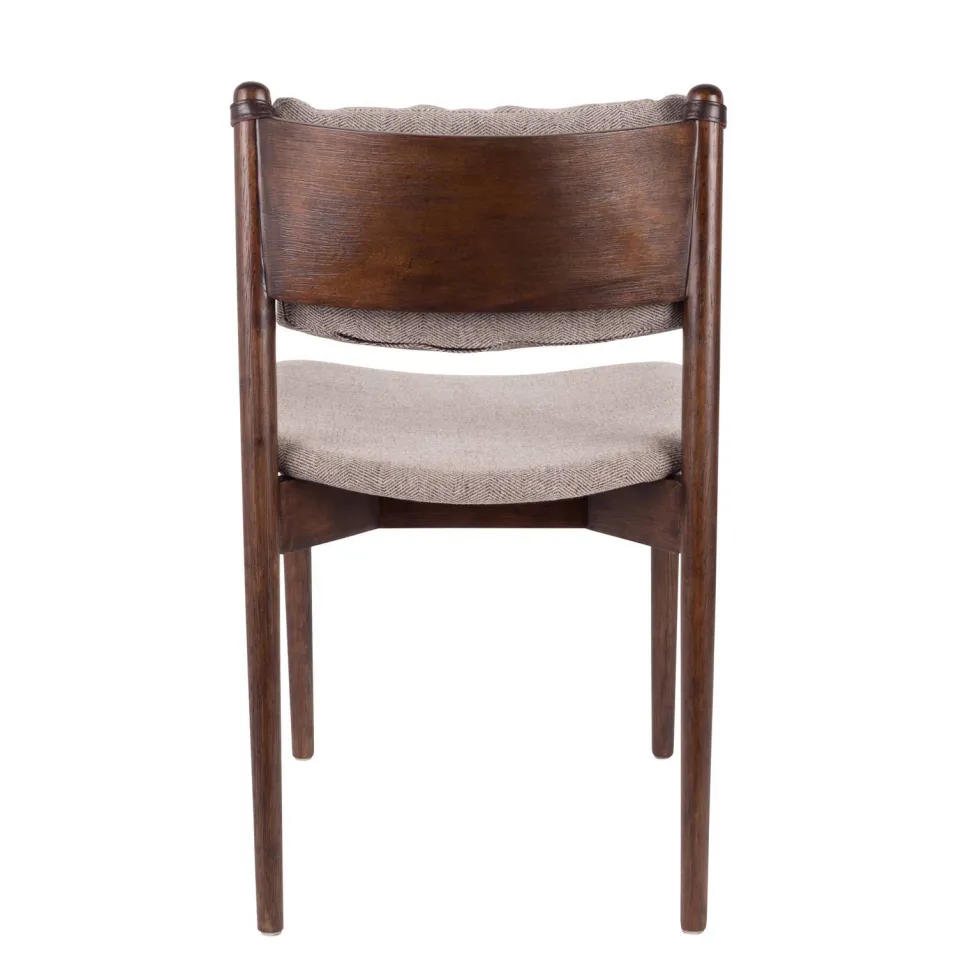 De Torrance Eetkamerstoel Is Bekleed Met 100% Polyester Met Een Visgraatpatroon. Het Rugkussen Is Eenvoudig Te Verwijderen Voor Als Je Deze Wilt Schoonmaken. Het Visgraatpatroon, De Massief Bruine Poten En De Brede Zitting Passen Perfect In Een Klassiek, Reto En Vintage Interieur.