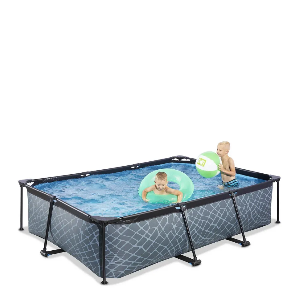 Het Exit Stone Zwembad 300 X 200 X 65 Cm Is Een Rechthoekig Grijskleurig Frame Zwembad. Dit Compacte Zwembad Is Standaard Voorzien Van Een Filterpomp En Valt Op Tussen Andere Baden Door Zijn Stoere Steenpatroon. Ben Je Op Zoek Naar Een Geschikt Zwembad Voor Jonge Kinderen Of Een Ondiep Bad Om Zelf Lekker In Af Te Koelen? Kies Dan Voor Dit Unieke En Hoogwaardige Frame Zwembad Van Exit Toys!