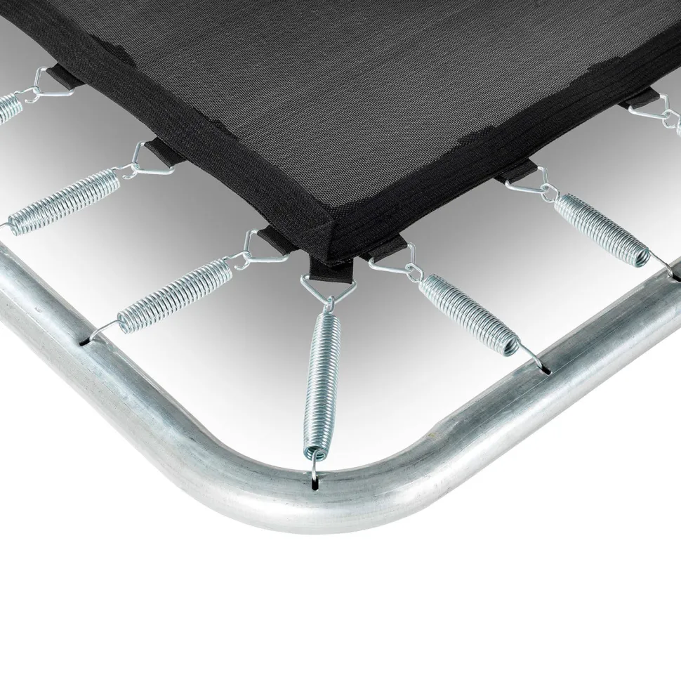 De Exit Silhouette Trampoline Op Poten Is Een Rechthoekige Trampoline. Het Veiligheidsnet, Dat Standaard Wordt Meegeleverd Met De Trampoline Op Poten, Is Voorzien Van Gebogen Staanders Zodat Het Net Strakgespannen Staat. De Hoogwaardige Beschermrand Dekt De Gegalvaniseerde Veren Volledig Af En Is Voorzien Van Een Speciaal Ontwikkeld Voetbeschermingssysteem, Zodat Je Voet Niet Tussen De Veren Kan Komen. De Stevige Veren Staan Garant Voor Goede Sprongkracht. Het Frame Van De Silhouette Trampoline Is Gegalvaniseerd En Gepoedercoat Zodat Roest Geen Kans Maakt. Op De Rechthoekige Exit Silhouette Trampolines Beleef Je Eindeloos Veel Springplezier!