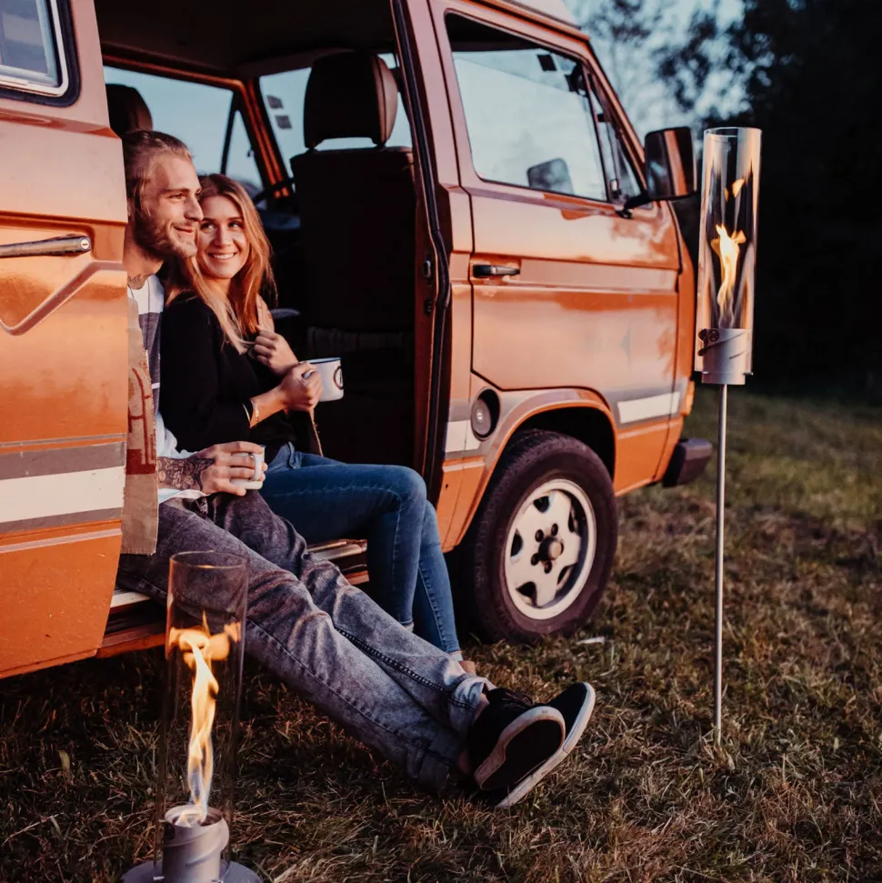 Met De Fascinerende Vlamwerveling Creeert De Spin Een Kampvuur Sfeer Op Balkon En Terras En Wordt Zo De Blikvanger Van De Avond. De Fakkel Bestaat Uit Een Roestvrijstalen Behuizing En Grondpen En Een Cilinder Van Borosilicaatglas. De Roterende Vlammenspeling Is Gebaseerd Op Bio-Ethanol, Dat In Een Blikje Wordt Verbrand. Het Los Verkrijgbare Blikje Wordt Eenvoudig In De Antislip Houder Gestoken En Verlicht. De Cilinder Wordt Dan Bovenop Geplaatst En Het Vuur Wervelt Anderhalf Uur Lang. Als Toortsvariant Kan Spin Eenvoudig In De Grond Worden Bevestigd. Door De Meegeleverde 4-Delige Grondpen Kunnen Verschillende Hoogtes Worden Ingesteld En Gerealiseerd. De Afzonderlijke Delen Van De Spike Verschillen In Lengte (7 Cm + 34 Cm + 48 Cm) En Hebben Een Extra Aardingspijker, Wat Een Stabiele Ondersteuning Garandeert.