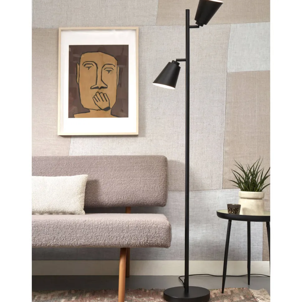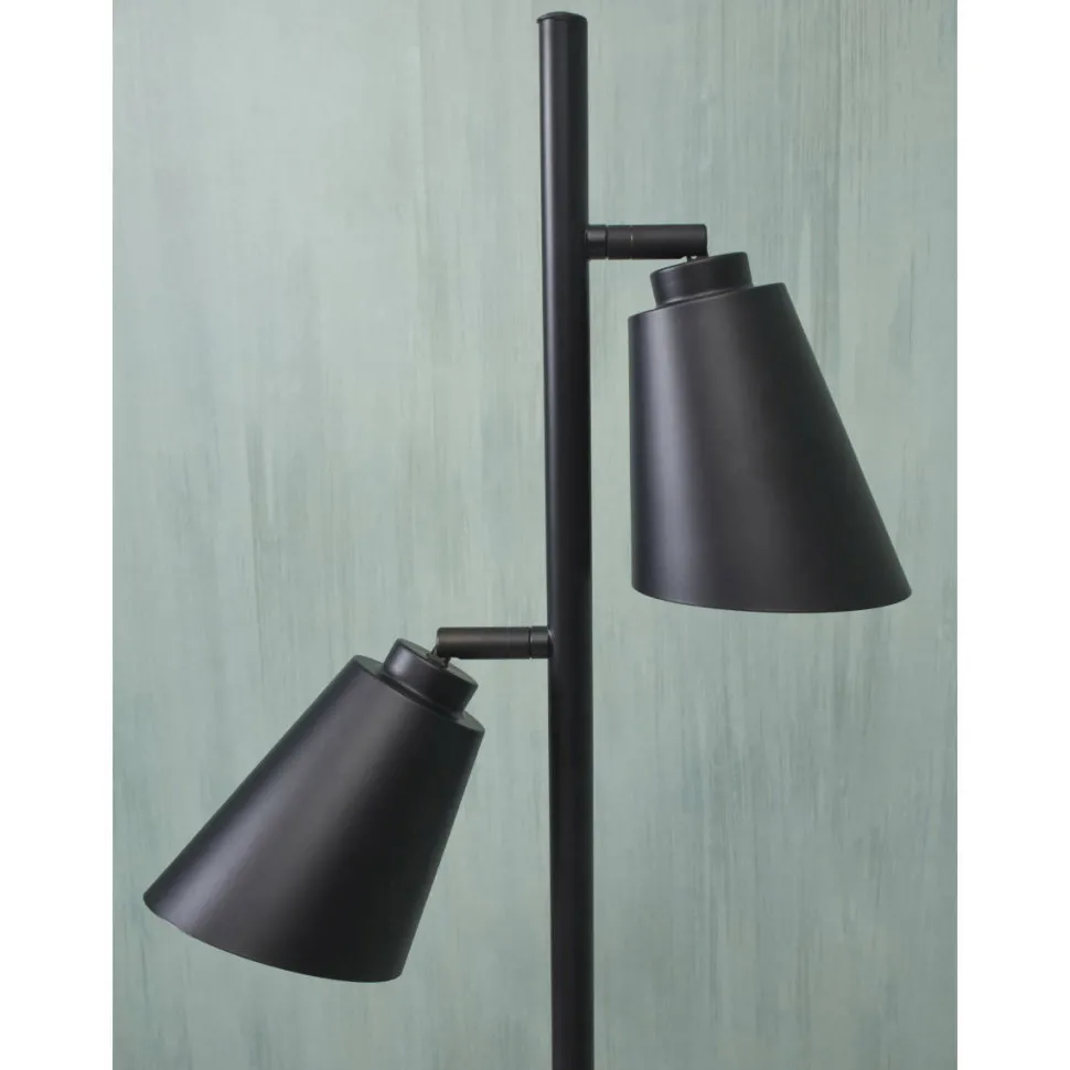 Of Je Nu Kiest Voor De Bremen Vloerlamp, De Plafonniere Of De Wandlamp, Elke Lamp Voegt In Een Handomdraai Meer Sfeer Toe Aan Je Woning. De Vloerlamp – Gemaakt Van Hoogwaardig Ijzer En Met Een Gewicht Van 5 Kilogram – Heeft Een Ronde Solide Voet Met Een Diameter Van 25 Cm Breed En Een Dikte Van 2,5 Cm. De Twee Kantelbare Lampenkappen Hebben Allebei Een E27 Fitting, Geschikt Voor Een Lampje Van Maximaal 40 Watt. Het Minimalistische Ontwerp, De Zwartkleurig Kleur En De Gladde Finish Maken De Vloerlamp Een Echte Blikvanger. De Lamp Is Ook In Het Goud Beschikbaar.