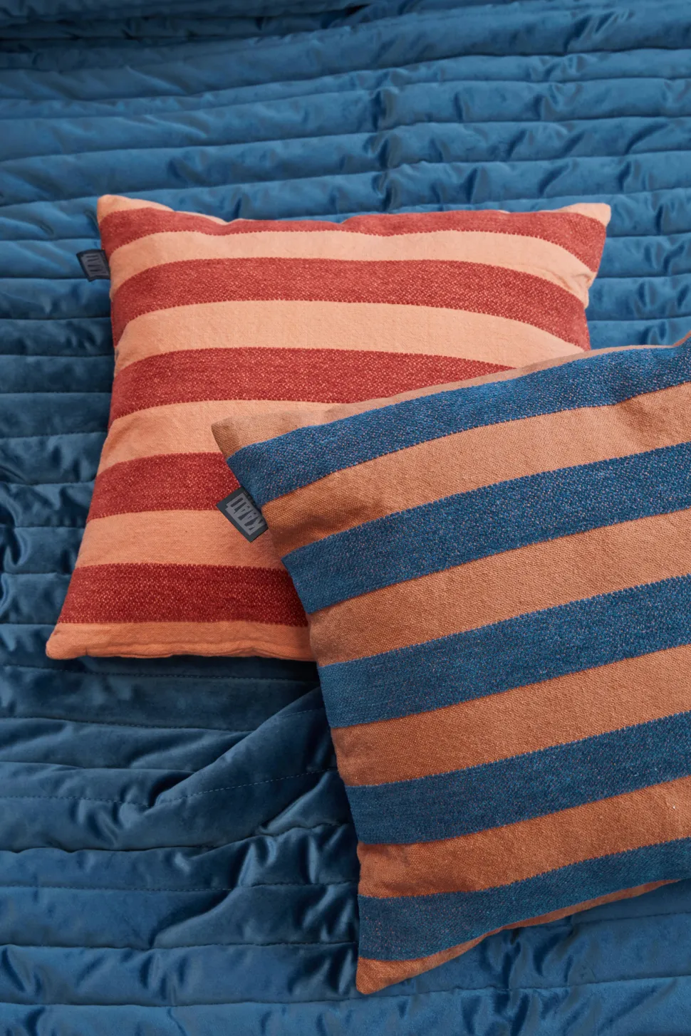Sierkussen Nissa Van Kaat Amsterdam Heeft Brede Geweven Chenille Strepen In Blauw Op Een Terra Achtergrond. Deze Garen Zorgen Voor Een Fijne, Zachte Structuuren Een Speels Effect. En Het Maakt Niet Uit Hoe Je Het Kussen Neerlegt, De Voor- En Achterkant Zijn Namelijk Hetzelfde. Het Sierkussen Is Er In Meerdere Kleurstellingen. Sierkussen Nissa Is Gemaakt Van 100% Katoen. Het Formaat Is 45 X 45 Cm. Het Kussen Heeft Aan De Onderkant Een Ritssluiting En Wordt Geleverd Inclusief Een Veerkrachtig Polyester Binnenkussen. Leuk Detail: Het Sierkussen Heeft Een Gouden Puller Aan De Ritssluiting In De Vorm Van Een Amsterdams Grachtenpandje. Het Kussen Is Niet Geschikt Voor De Wasmachine En Droger.