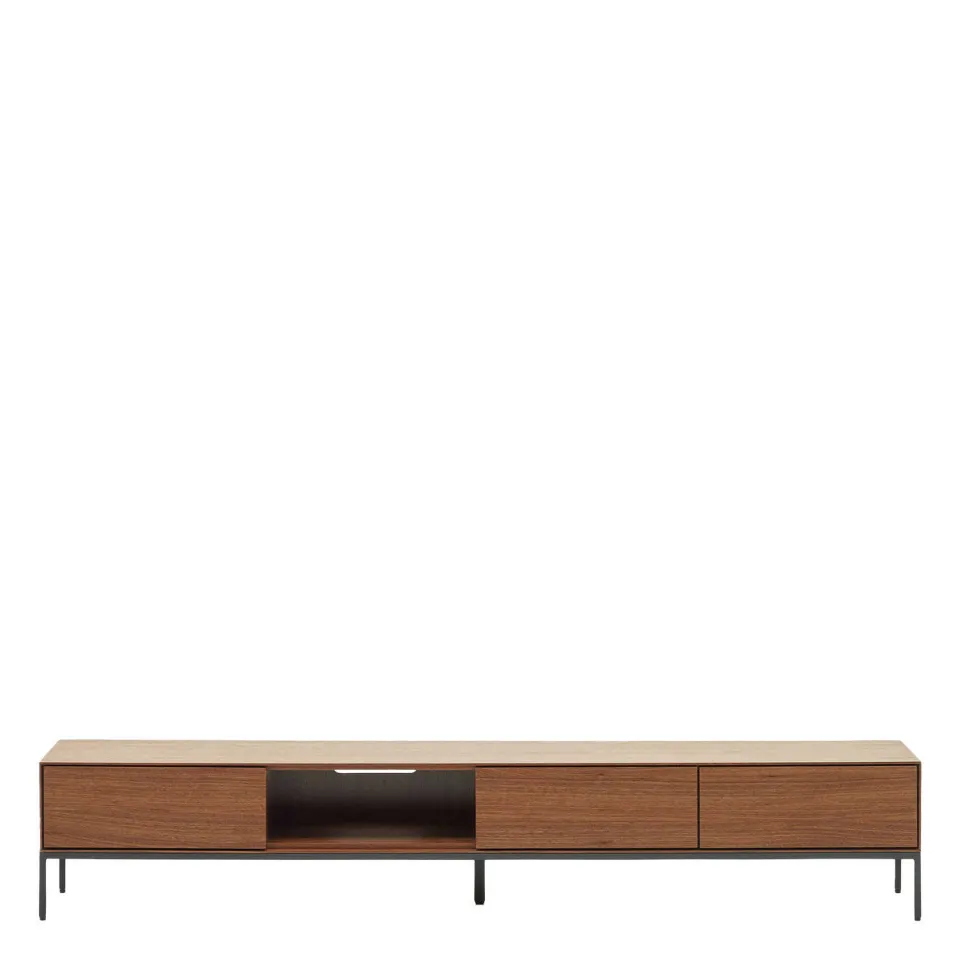 Tv-Meubel Gemaakt Van Walnootfineer. 3 Laden Met Verborgen, Verstelbare Geleiders En Push-To-Open Mechanisme. Verstelbare Stalen Poten Met Een Matte Antraciet Gelakte Afwerking. Kave Cares Design: Gemaakt Van E0 Gefabriceerd Hout Met Lage Formaldehyde Uitstoot, Om De Planeet Schoner Te Maken Van Schadelijke Stoffen. Exclusief Ontwerp, Gemaakt Door Het Kave Home Team.