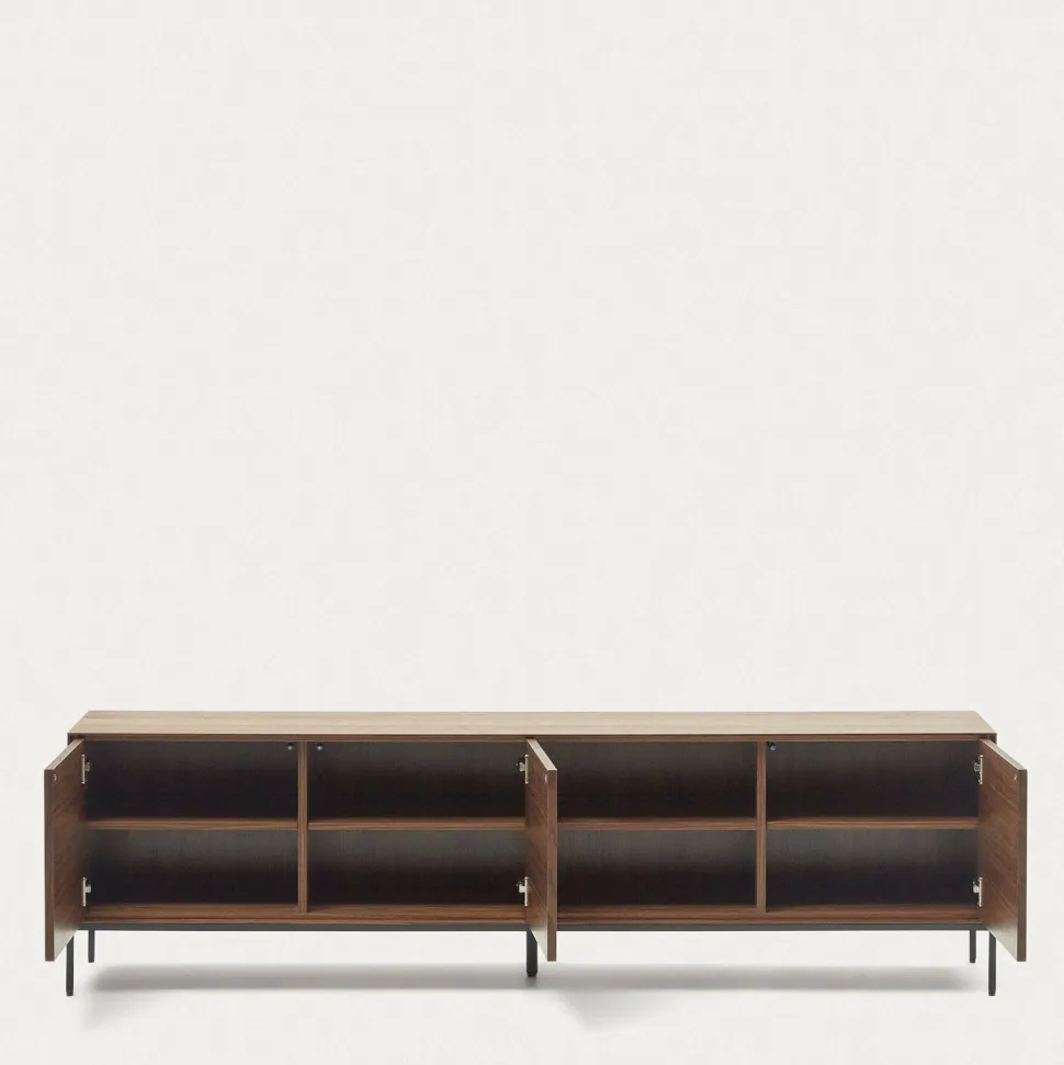 Tv-Meubel Gemaakt Van Walnootfineer. 3 Push To Open Deuren Met Soft Close Scharnieren. Verstelbare Stalen Poten Met Een Matte Antraciet Gelakte Afwerking. Kave Cares Design: Gemaakt Van E0 Gefabriceerd Hout Met Lage Formaldehyde Uitstoot, Om De Planeet Schoner Te Maken Van Schadelijke Stoffen. Exclusief Ontwerp, Gemaakt Door Het Kave Home Team.