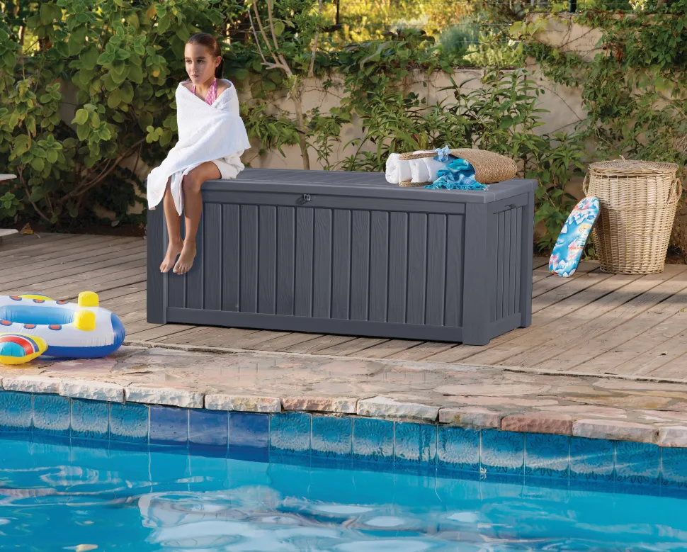 Met Deze Keter Rockwood Opbergbox 570L Haal Je Het Maximum Uit Je Buitenruimte. Deze Opbergbox Is Gemaakt Van Weersbestendig Kunststof En Houdt Al Je Spullen Droog En Vrij Van Schimmel. Ga Voor De Strakke Look Van Houten Panelen, Maar Zonder Het Onderhoud. Je Kunt Tevens Op Het Deksel Met 2 Volwassenen Gemakkelijk Plaatsnemen Waardoor Je Veel Ruimte Bespaart. Dankzij Het Automatische Openingsmechanisme Gaat Het Deksel Gemakkelijk Open En Dicht. De Grendel Is Afsluitbaar. Deze Box Is Zeer Stevig En Gaat Jaren Mee!