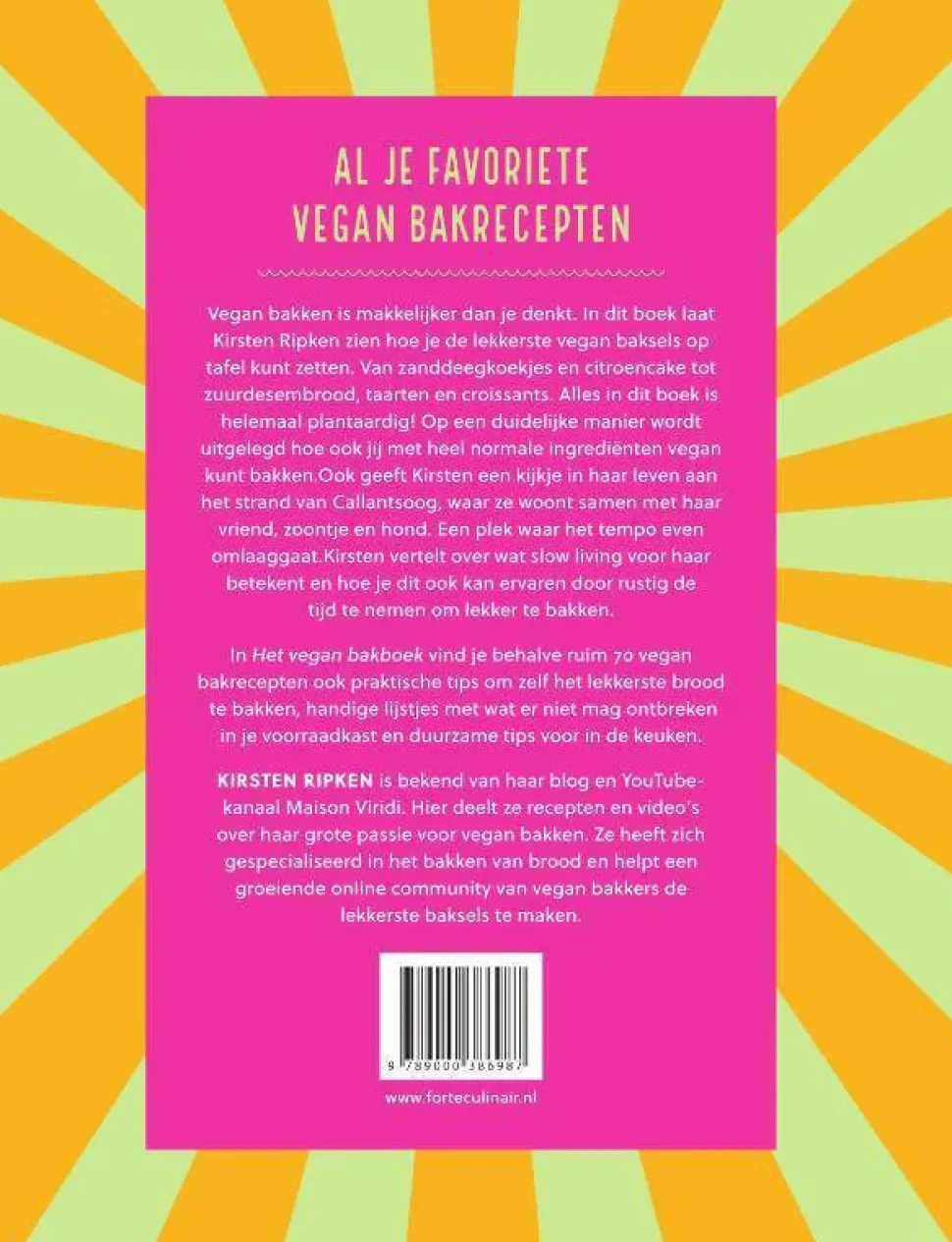 Vegan Bakken Is Makkelijker Dan Je Denkt. In Dit Boek Laat Kirsten Ripken Zien Hoe Je De Lekkerste Vegan Baksels Op Tafel Kunt Zetten. Van Zanddeegkoekjes En Citroencake Tot Zuurdesembrood, Taarten En Croissants. Alles In Dit Boek Is Helemaal Plantaardig! Op Een Duidelijke Manier Wordt Uitgelegd Hoe Ook Jij Met Heel Normale Ingredienten Vegan Kunt Bakken. Ook Geeft Kirsten Een Kijkje In Haar Leven Aan Het Strand Van Callantsoog, Waar Ze Woont Samen Met Haar Vriend, Zoontje En Hond. Een Plek Waar Het Tempo Even Omlaaggaat.