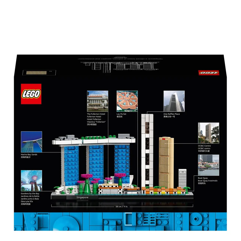 Laat Je Meevoeren Naar Een Van De Meest Opwindende Steden Ter Wereld Met Dit Lego Architecture Skyline Verzamelmodel Van Singapore (21057) Voor Volwassenen. Een Paspoort Heb Je Niet Nodig. Neem Wat Quality Time Voor Jezelf En Bouw Replica’S Van Marina Bay Sands, Het Ocbc Centre, One Raffles Place, Lau Pa Sat Food Market, Het Fullerton Hotel Singapore En Supertree Grove At Gardens By The Bay. Voeg Lego-Onderdelen Toe Die De Singapore River En Bomen Voorstellen Om Er Het Grootste, Meest Gedetailleerde Lego-Skylinemodel Ooit Mee Af Te Werken.