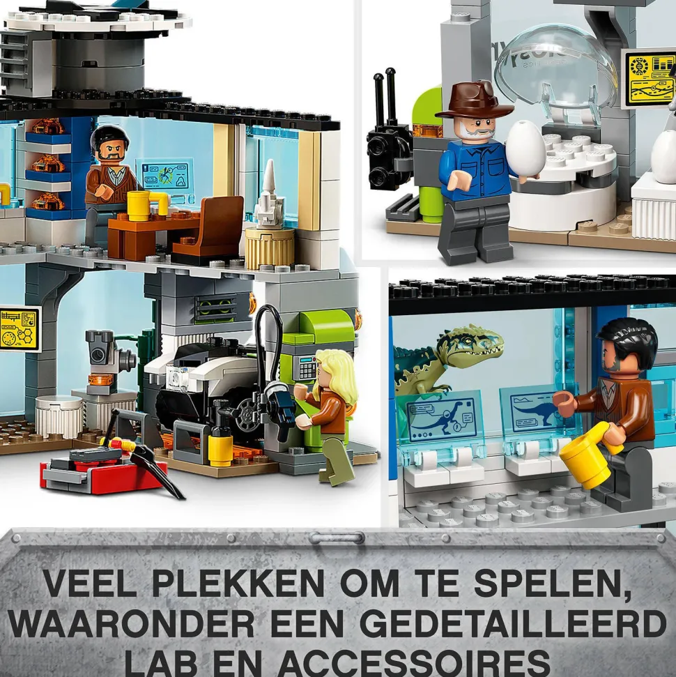 Dit Hoogwaardige Lego Jurassic World Speelgoed Voor Kinderen Van 9 Jaar En Ouder Bevat 6 Minifiguren: Owen Grady, Claire Dearing, Dr. Alan Grant Met Een Fossielelement, Dr. Ellie Sattler, Kayla Watts En Dr. Henry Wu. De Set Bevat Bovendien 2 Dino Figuren Die Kunnen Bewegen, Een Bouwbaar Hoofdkwartier Met Een Gedetailleerd Lab, Een Garage Voor De Terreinwagen, Een Observatietoren Met Functie Waarmee Het Platform In Kan Storten, Een Helikopter Met Draaiende Propellers En Een Laadruim. Dankzij De Eenvoudige, Geillustreerde Instructies Kunnen Zelfs Beginnende Lego Bouwers Vol Vertrouwen Genieten Van Het Bouwproces.