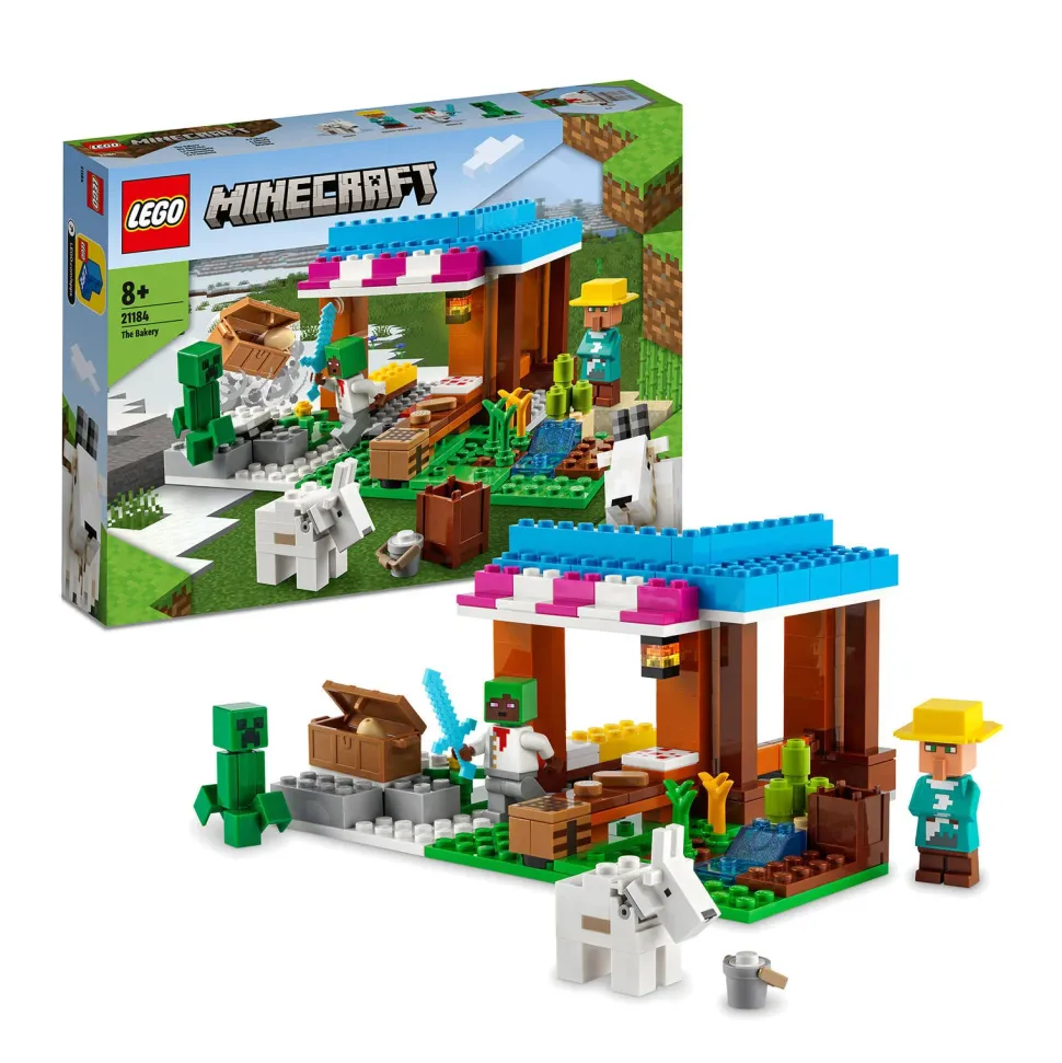 Deze Lego Minecraft De Bakkerij (21184) Set Zit Vol Speelmogelijkheden. Dit Leuke Speelgoed Voor Kinderen Vanaf 8 Jaar Bestaat Uit Verschillende Personages Uit Het Minecraft Dorp, Leuke Activiteiten En Coole Accessoires, Waarmee Kinderen De Leukste Avonturen Kunnen Beleven. Deze Bouwset Vol Speelmogelijkheden Bevat Verschillende Poppetjes Van Minecraft Personages: Een Bakker, Sneeuwdorpeling, Geit En Een Creeper. De Bedrijvige Bakkerij Heeft Een Gemeubileerde Kamer Waarin Kinderen Allerlei Verhalen Kunnen Naspelen. Voordat Ze Brood En Koekjes Kunnen Bakken, Moeten Ze De Ingredienten Verzamelen. Ze Verbouwen Het Graan Samen Met Een Boer En Melken De Geit. Daarna Gaan Ze Samen Met De Bakker Creatief Aan De Slag In De Keuken. Maar Een Gevreesde Creeper Houdt Zich Dichtbij Schuil En Is Vastbesloten Om De Schatkist Met Een Waardevol Ei Erin Te Vernietigen. Kinderen Moeten De Bakkerij Verdedigen Met Een Diamanten Zwaard, Het Klassieke Minecraft Wapen. Als De Strijd Voorbij Is, Kunnen Ze Het Modulaire Boerderij Speelgoed Eenvoudig Op Een Andere Manier Indelen Voor Nieuwe Avonturen. Met Minecraft Speelgoed Kunnen Kinderen De Beroemde Game Op Een Andere Manier Beleven. Met Bekende Personages, Locaties En Functies Komt De Bouwbare Lego-Versie Van Het Spel Tot Leven. Verras Kinderen Vanaf 8 Jaar En Fans Van Minecraft Met Dit Leuke Cadeau Voor Een Verjaardag, Kerst Of Een Andere Speciale Gelegenheid. Afmetingen: De Set Is Ca. 8 Cm Hoog, 17 Cm Breed En 14 Cm Diep Bevat 154 Onderdelen