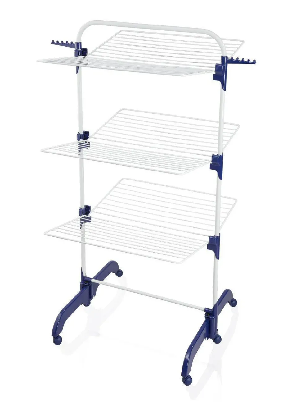 De Comfort Tower 420 Droogtoren Is Een Echt Ruimtewonder. Met Zijn Afmetingen Van Max. 76,5 X 70 Cm Past De Droogtoren In Een Smalle Badkamer, Op Een Klein Balkon Of In Een Smalle Gang. Drie Boven Elkaar Liggende Droogniveaus Bieden Een Drooglengte Van 42 Meter En Ruimte Voor Maximaal 4 Wasmachineladingen. Omdat De Droogroosters Afzonderlijk Kunnen Worden Ingeklapt, Kan De Torendroger Halfzijdig Worden Gebruikt En Makkelijk Tegen Een Muur Worden Geplaatst. Dankzij De 4 Geintegreerde, Soepel Lopende Wielen Kan Hij Bij Volle Belading In Alle Richtingen Worden Verplaatst. De Wielen Hebben Een 360° Draaikoppeling Die Rondom Bewogen Kan Worden. De Comfort Tower 420 Is De Ideale Droogtoren Voor Gezinnen Met Beperkte Droogruimte. Na Gebruik Kan Je De Comfort Tower 420 Makkelijk Inklappen: Plat Opgevouwen Past Hij Moeiteloos Tussen De Kast En De Muur. Dankzij De 2 Zijdelingse Kledinghangerhouders Biedt De Droogtoren Extra Droogruimte. De Hoogte Is 1,45 Meter.