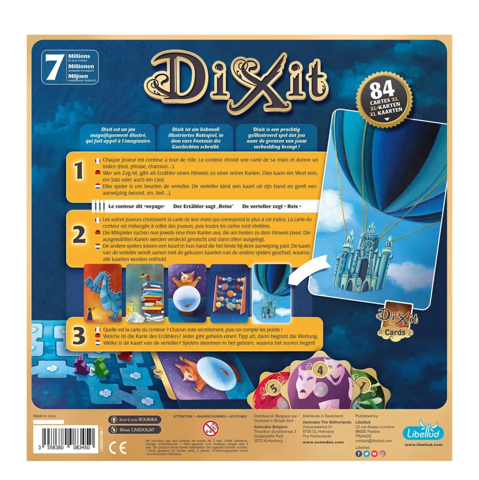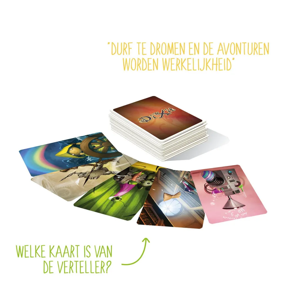 In Dixit Speel Je Met Prachtig Geillustreerde, Grote Speelkaarten. Wanneer Je Aan De Beurt Bent Zeg Je Iets Over Een Van De Kaarten In Je Hand. Je Kunt Iets Vertellen, Zingen Of Rijmen, Wat Je Maar Wil. Vervolgens Kiezen De Andere Spelers Een Kaart Uit Hun Hand Die Het Beste Aansluit Bij Wat De Verteller Heeft Gezegd. De Gekozen Kaarten Worden Samen Geschud Met De Oorspronkelijke Kaart. Vervolgens Worden Ze Opengedraaid En Moeten De Spelers Raden Welke De Oorspronkelijke Kaart Is. Dit Unieke Spel Is Geschikt Voor De Hele Familie En Won Al Vele Prijzen.