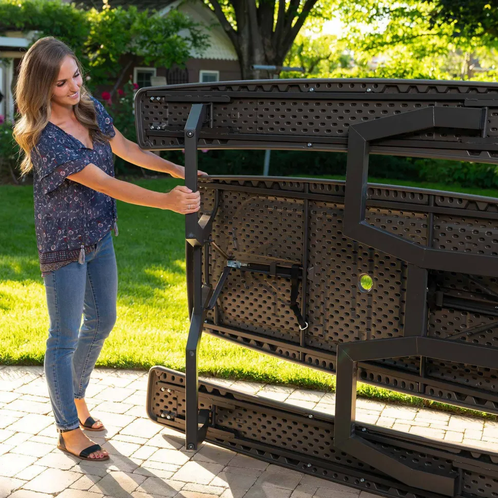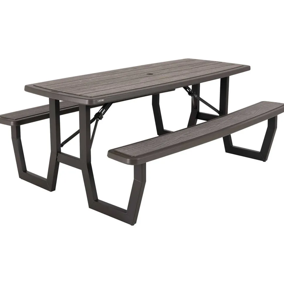 De Opklapbare Lifetime Rough-Cut Picknicktafel Is Van Prachtig High-Density Polyethylene (Hdpe) Materiaal Die De Natuurlijke Look En Feel Van Hout Geeft. In Tegenstelling Tot Echt Hout Is Deze Picknicktafel Onderhoudsarm, Vlekbestendig En Erg Gemakkelijk Schoon Te Maken.