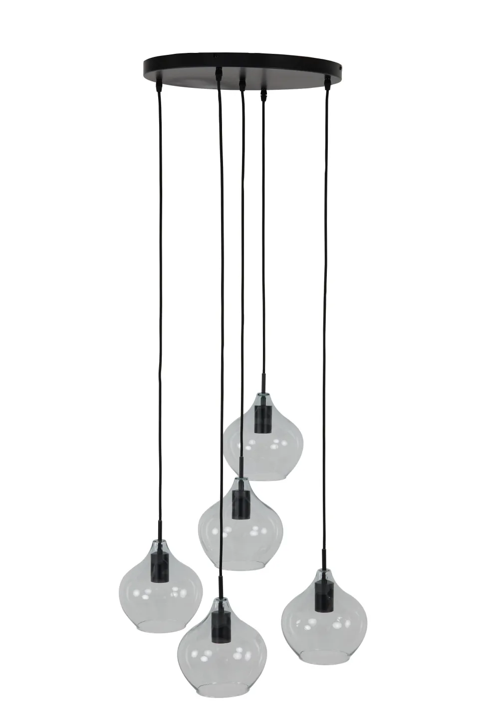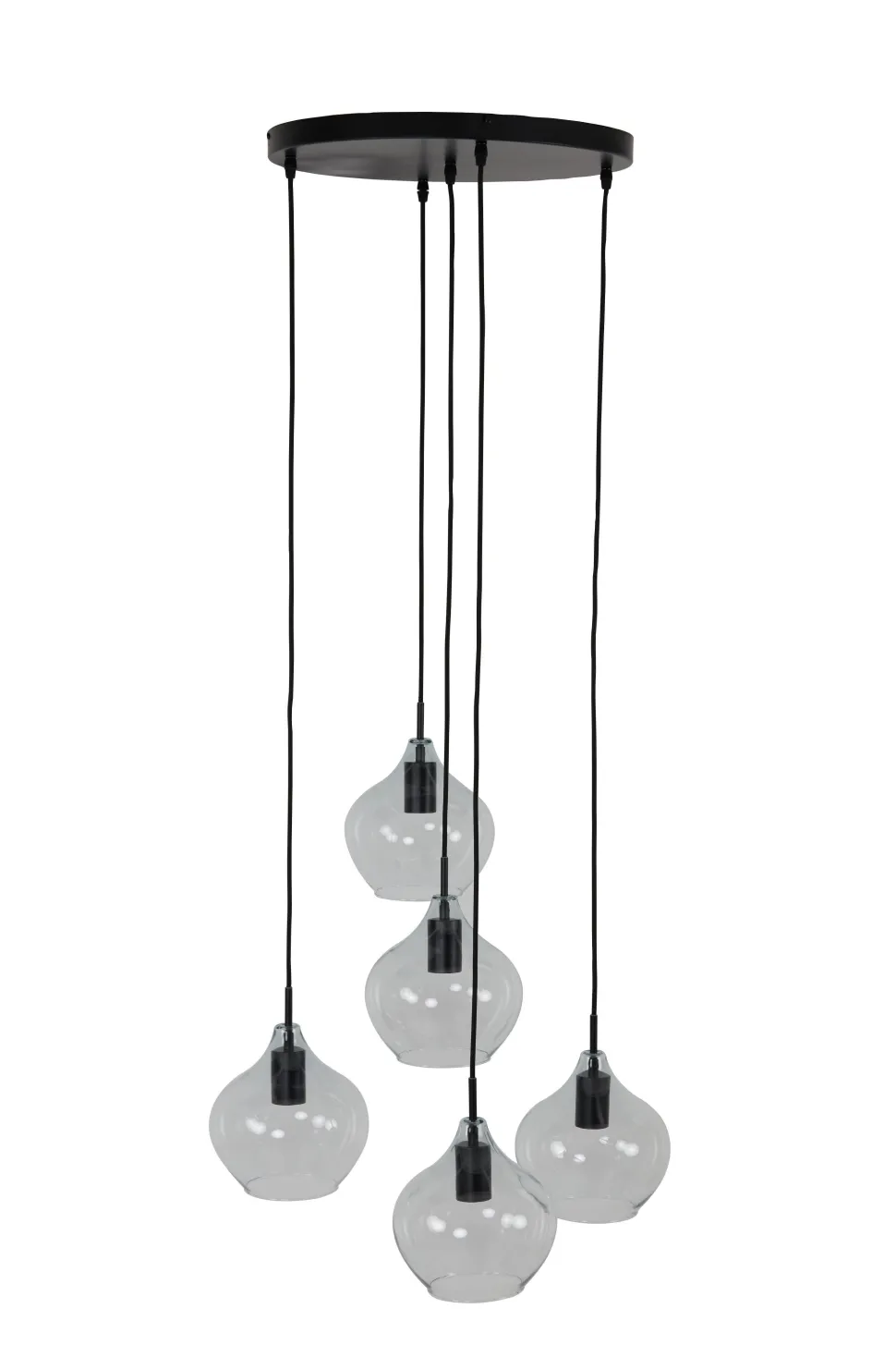 Deze Ronde Hanglamp Rakel Heeft Een Stijlvolle Uitstraling En Valt Op Door De 5 Lichtpunten. Je Kan Zelf Bepalen Op Welke Hoogte Je Elke Lamp Individueel Zou Willen Hangen. De Combinatie Van Het Heldere Glas En De Mat Zwarte Fitting En Snoer Zorgt Voor Een Mooie Toevoeging In Een Modern Interieur. De Afmeting Van De Lamp Is O61X66 Cm. Dit Product Is Van Het Nederlandse Merk Light & Living. Light & Living Is Een Toonaangevend Merk In Verlichting, Woonaccessoires En Klein Meubilair.
