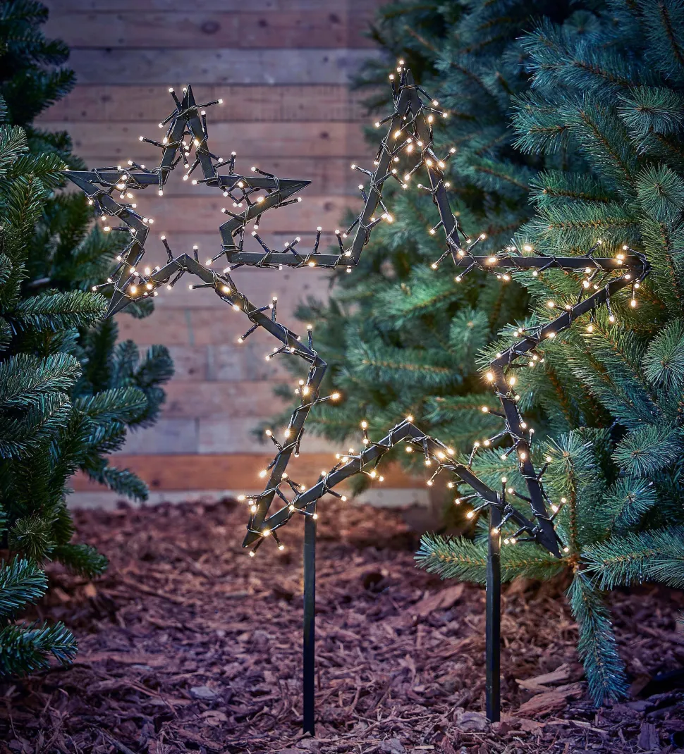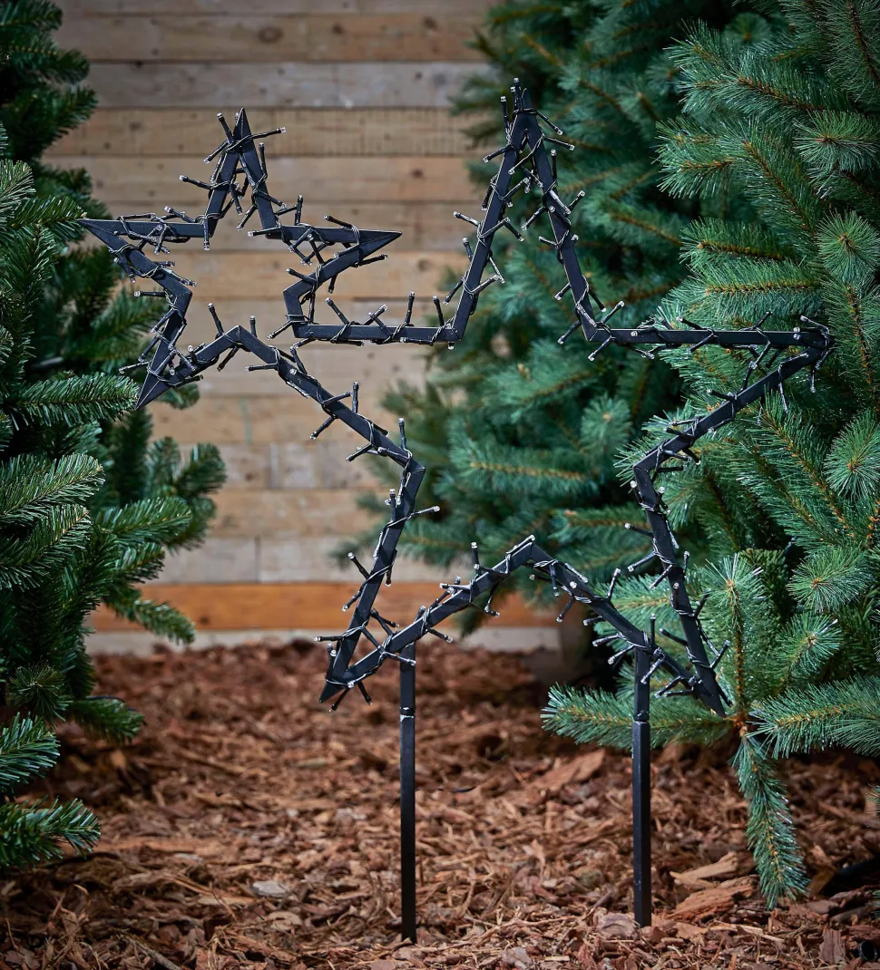 De Stervormige Tuinsteker Met Verlichting Van Luca Lighting Is Een Echte Sfeermaker Tijdens De Mooiste, Maar Ook Donkerste, Dagen Van Het Jaar. Het Frame Is Gemaakt Van Stevig Metaal En Kan Door Middel Van De Twee Pinnen Gemakkelijk In De Grond Gezet Worden. Rondom Het Frame Zijn Maar Liefst 220 Led Lampjes Gewikkeld Die Een Warm Wit Licht Geven. Met De Meegeleverde Adapter Kun Je Een Timer Aanzetten En Jouw Favoriete Stand Kiezen Uit 8 Verschillende Opties. Het Frame Is Zwart, Waardoor Het Overdag Niet Opvalt En Je In De Avond Alleen De Stralende Lampjes Ziet. Echt Een Eyecatcher! De Tuinsteker Is Verkrijgbaar In Verschillende Vormen En Afmetingen. Dit Model Heeft De Vorm Van Een Ster Met Aan De Bovenkant Zit Nog Kleine Kleine Ster. De Afmetingen Zijn L70 X H82 Cm.