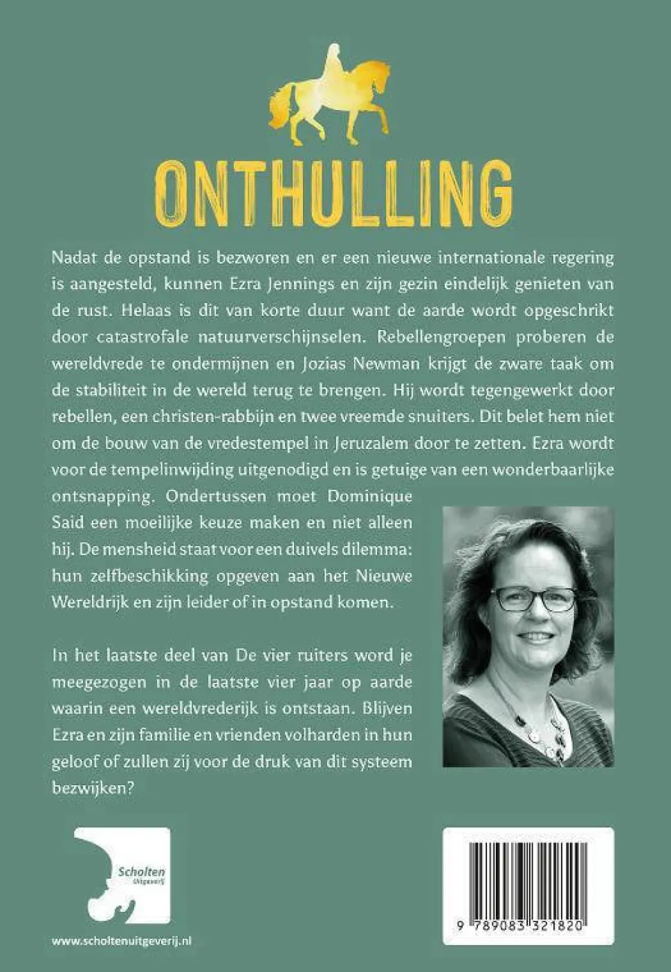 Nadat De Opstand Is Bezworen En Er Een Nieuwe Internationale Regering Is Aangesteld, Kunnen Ezra Jennings En Zijn Gezin Eindelijk Genieten Van De Rust. Helaas Is Dit Van Korte Duur Want De Aarde Wordt Opgeschrikt Door Catastrofale Natuurverschijnselen. Rebellengroepen Proberen De Wereldvrede Te Ondermijnen En Jozias Newman Krijgt De Zware Taak Om De Stabiliteit In De Wereld Terug Te Brengen. Hij Wordt Tegengewerkt Door Rebellen, Een Christen-Rabbijn En Twee Vreemde Snuiters. Dit Belet Hem Niet Om De Bouw Van De Vredestempel In Jeruzalem Door Te Zetten. Ezra Wordt Voor De Tempelinwijding Uitgenodigd En Is Getuige Van Een Wonderbaarlijke Ontsnapping. Ondertussen Moet Dominique Said Een Moeilijke Keuze Maken En Niet Alleen Hij. De Mensheid Staat Voor Een Duivels Dilemma: Hun Zelfbeschikking Opgeven Aan Het Nieuwe Wereldrijk En Zijn Leider Of In Opstand Komen.In Het Laatste Deel Van De Vier Ruiters Word Je Meegezogen In De Laatste Vier Jaar Op Aarde Waarin Een Wereldvrederijk Is Ontstaan. Blijven Ezra En Zijn Familie En Vrienden Volharden In Hun Geloof Of Zullen Zij Voor De Druk Van Dit Systeem Bezwijken?