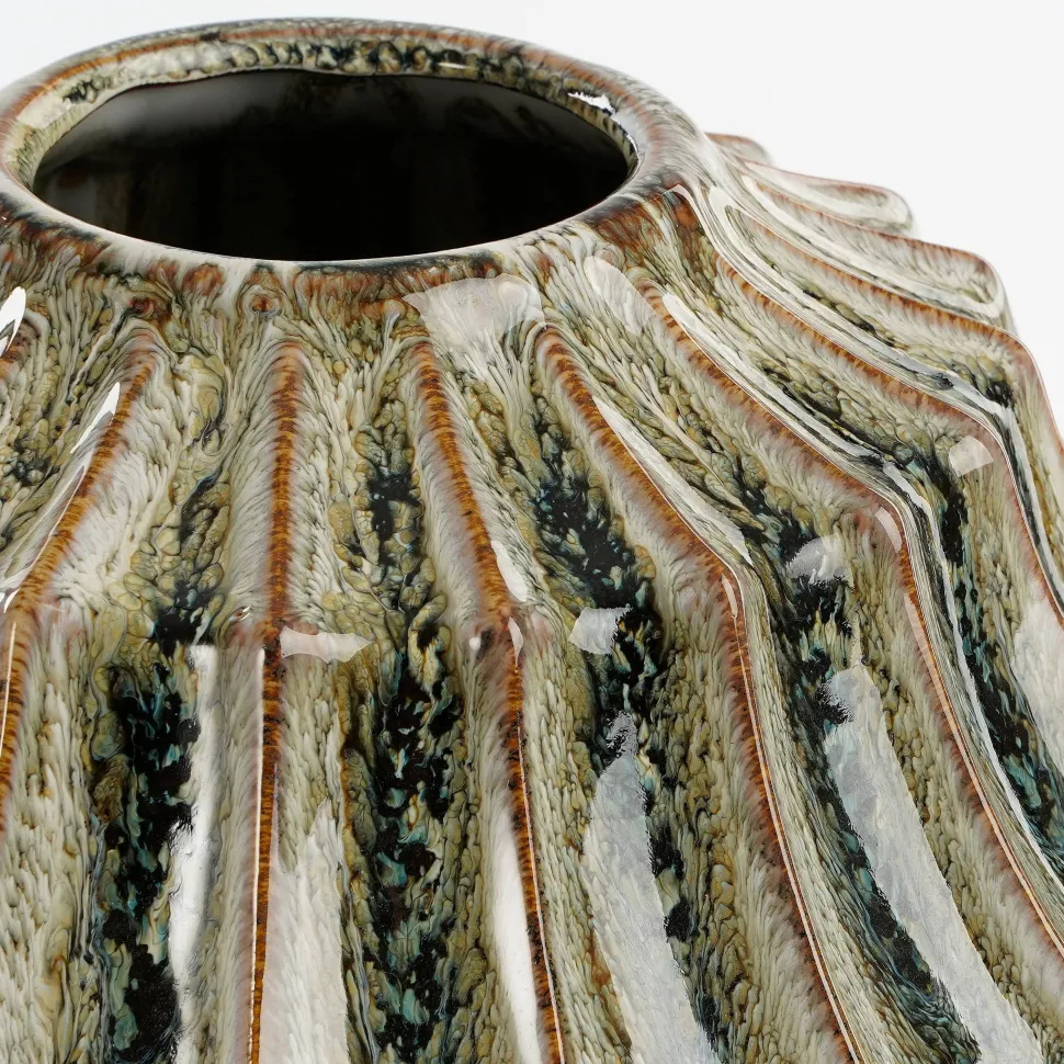 Verfraai Je Huis Met De Pippa Vaas Van Mica Decorations, Of Je Nu Kiest Voor Bloemen Of Niet. De Vaas Is Handgemaakt Van Stevig Keramiek, Prachtig! Door De Warme, Groen/Beige Kleur En Het Unieke Design Springt Deze Vaas Direct In Het Oog. De Pipa Collectie Bestaat Uit Meerdere Vazen In Verschillende Kleuren, Maten En Kunnen Ook Leuk Met Elkaar Gecombineerd Worden. Deze Groene Vaas Is 33 Cm Hoog En Heeft Een Diameter Van 27 Cm. Door De Smalle Opening Van 7,5 Cm Is De Vaas Geschikt Voor Een Paar Losse Bloemen, Siertakken Of Droogbloemen. Ideaal Voor Op Tafel! Waar Zet Jij Deze Keramieken Vaas Neer?