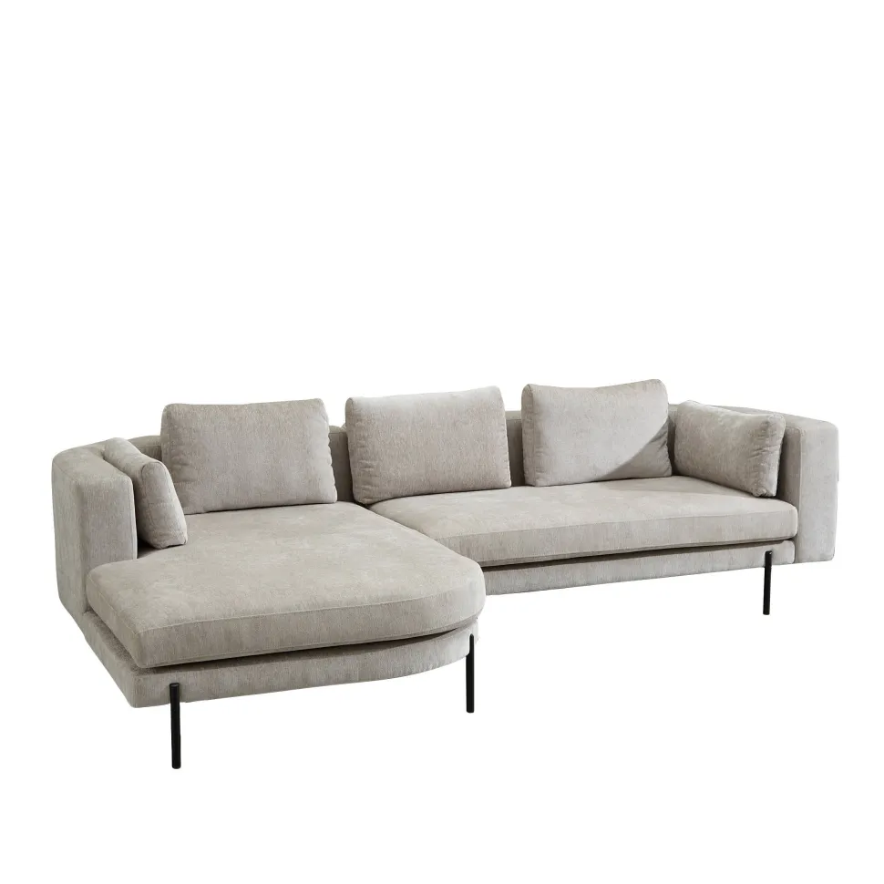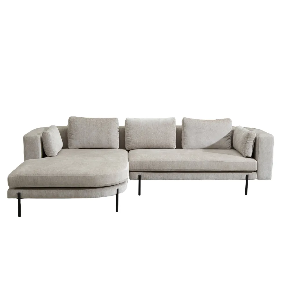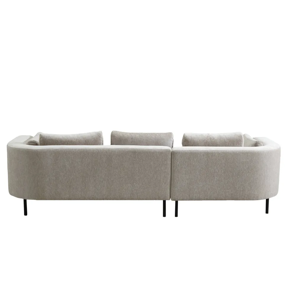 Een Combinatie Van Een Strak Tijdloos Design En Organische Vormen Komen Samen In De Toulon Hoekbank. De Toulon Van De Nous Living Collectie Is Een Ware Toevoeging Voor Je Interieur. Kenmerkend Aan Deze Royale Hoekbank Zijn De Afgeronde Hoeken Die Je Ziet In De Rugleuning En Chaise Van Het Meubel. Dit In Combinatie Met De Strakke Afwerking Maken De Bank Uniek. De Toulon Is Bekleed Met Een Fijne Polyester Stof Die Zacht Aanvoelt En Warmte Biedt. Wel Zo Fijn Tijdens Een Heerlijk Ontspannend Avondje Op De Bank! De Losse Rug- En Zijkussens Bieden Nog Extra Comfort En Ondersteuning. Het Meubel Wordt Gedragen Door Een Rank Zwart Onderstel Met Een Minimalistische Uitstraling. Hoekbank Toulon Is Modern En Tijdloos, Dus Goed Te Combineren Met De Trends Van Nu. Maak De Bank Eigen Door Je Favoriete Kleur Toe Te Voegen In Kussens En Plaids Voor Een Extra Cozy Gevoel.