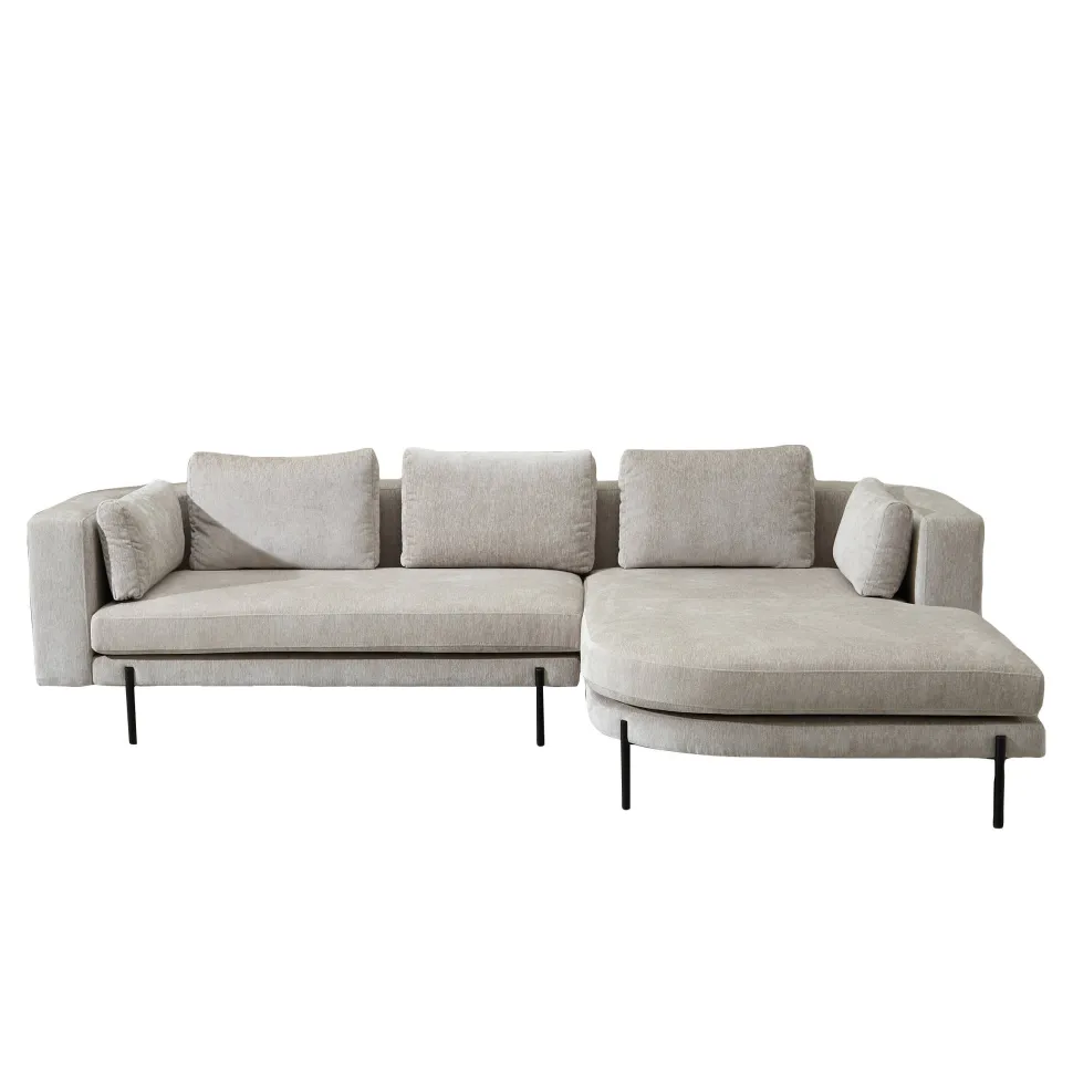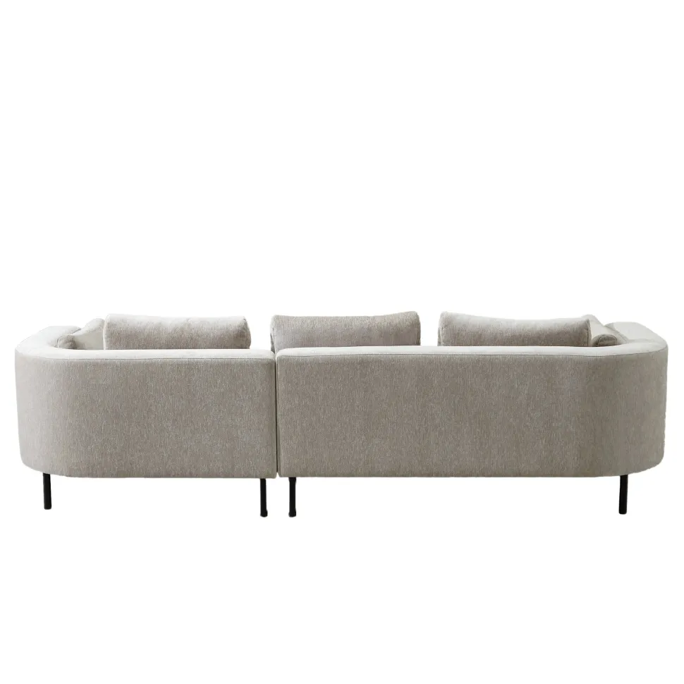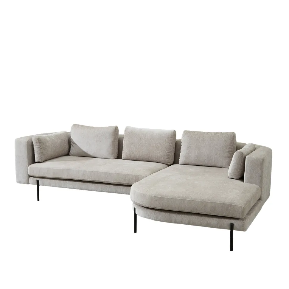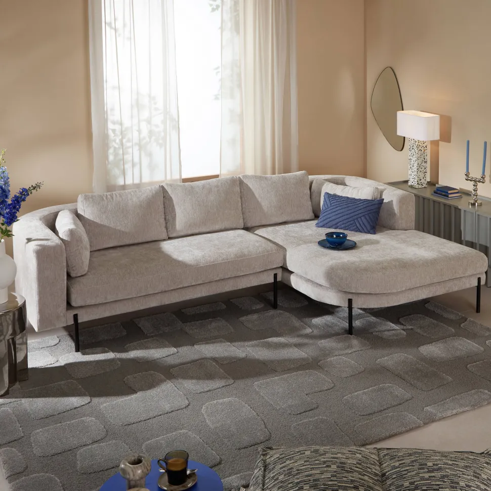 Een Combinatie Van Een Strak Tijdloos Design En Organische Vormen Komen Samen In De Toulon Hoekbank. De Toulon Van De Nous Living Collectie Is Een Ware Toevoeging Voor Je Interieur. Kenmerkend Aan Deze Royale Hoekbank Zijn De Afgeronde Hoeken Die Je Ziet In De Rugleuning En Chaise Van Het Meubel. Dit In Combinatie Met De Strakke Afwerking Maken De Bank Uniek. De Toulon Is Bekleed Met Een Fijne Polyester Stof Die Zacht Aanvoelt En Warmte Biedt. Wel Zo Fijn Tijdens Een Heerlijk Ontspannend Avondje Op De Bank! De Losse Rug- En Zijkussens Bieden Nog Extra Comfort En Ondersteuning. Het Meubel Wordt Gedragen Door Een Rank Zwart Onderstel Met Een Minimalistische Uitstraling. Hoekbank Toulon Is Modern En Tijdloos, Dus Goed Te Combineren Met De Trends Van Nu. Maak De Bank Eigen Door Je Favoriete Kleur Toe Te Voegen In Kussens En Plaids Voor Een Extra Cozy Gevoel.