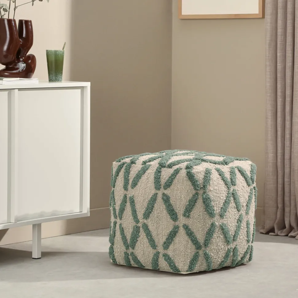 Vrolijk En Speels! Dat Is Poef Dagger Uit De Nous Living Collectie. Een Poef Is Super Handig In Je Interieur, Want Hij Is Namelijk Multifunctioneel. Je Kunt Dagger Gebruiken Als Extra Zitplek, Voetensteun Of Extra Tafeltje. Daarnaast Voegt De Dagger Poef Wat Kleur Toe Aan Je Interieur. Deze Eyecatcher Heeft Een Getuft Kruis Patroon. Het Hoogpolige En Pluche Effect Is Enorm Zacht En Aaibaar. De Poef Biedt Je Daarom Warmte En Comfort. Dagger Is Verkrijgbaar In De Kleuren Groen En Rust. Welke Is Jouw Favoriet?