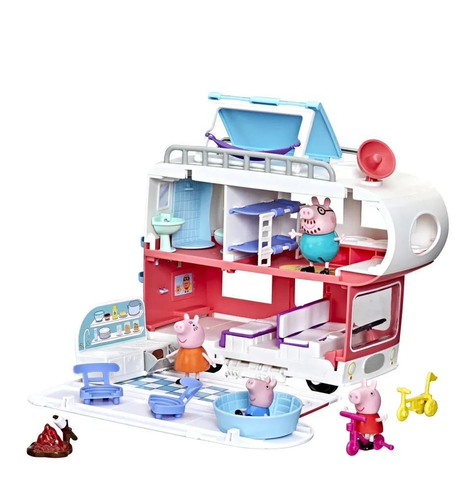 Kinderen Vanaf 3 Jaar Zullen Dolgraag Spelen Dat Ze Op Vakantie Zijn Met Peppa En Haar Familie In Peppa’S Speelgoedgezinscamper! Ze Kunnen Zich Voorstellen Dat Ze Samen Met Peppa Onderweg Zijn Terwijl Ze De Camper In Voertuigmodus Voortbewegen. Druk Op Het Stuur Om Muziek Te Horen Van De Peppa Pig-Serie En Zinnetjes Zoals “Are We Nearly There Yet?” (Zijn We Er Bijna?). Wanneer Het Moment Is Aangebroken Om Te ‘Kamperen’, Kan Het Voertuig Worden Omgevormd Tot Een Camper Met Meerdere Verdiepingen.