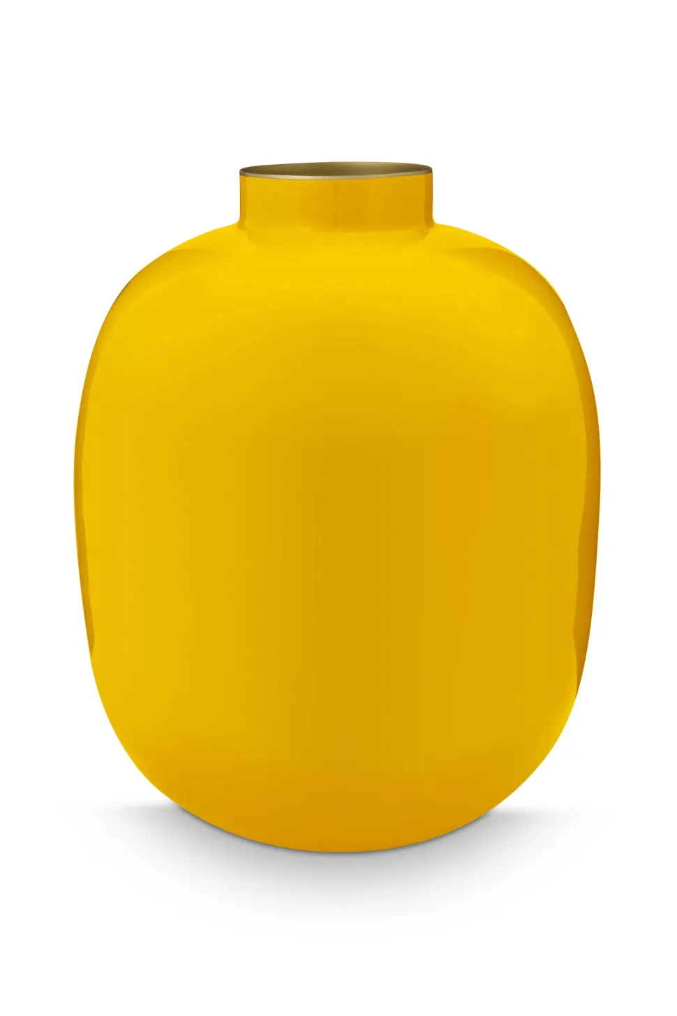 Geef Je Huis Een Kleurtje Met Deze Oker Gele Metalen Vaas. Deze Vaas Laat Elk Boeket Bloemen Er Prachtig Uitzien. Mix & Match Deze Vaas Met Een Van Onze Pip Bloemen En Creeer Een Echte Blikvanger In Huis. Is Je Interieur Toe Aan Een Complete Make-Over? Bekijk Dan Onze Hele Wooncollectie. Alle Items Zijn Gemakkelijk Te Combineren Met Deze Stijvolle Vaas.