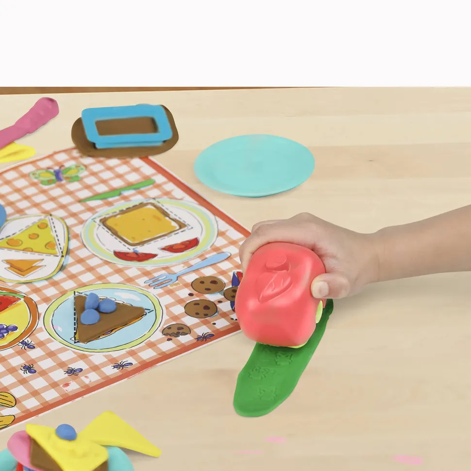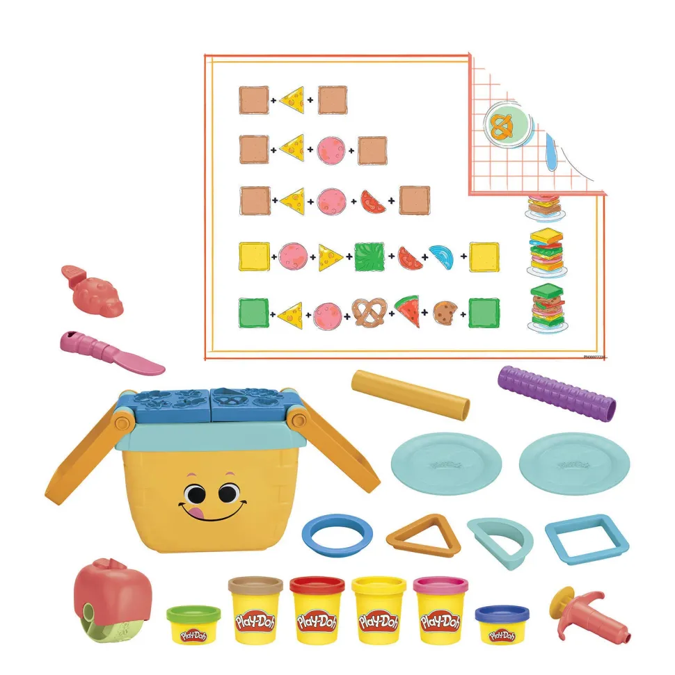 Zon Of Regen, De Play-Doh Picknick Creaties Starters Set Is Een Perfecte Picknickset Voor Kinderen, Voor Elk Moment! Met 12 Startergereedschappen, 6 Kleuren Play-Doh En Een Speelgoedpicknickmand Om De Gereedschappen In Op Te Bergen. Laat Kinderen Basisvormen Zoals Vierkanten, Cirkels En Driehoeken Onderzoeken, Terwijl Ze Hun Verbeelding Gebruiken En Play-Doh-Broodjes Stapelen Van Die Vormen. Bedenk Gekke Picknickverhalen Met Rare Snacks En Beestjes Op De Picknickkant Van De Speelmat Of Draai Hem Om Voor Leuke Rangschikkingsactiviteiten. Of Het Nu Hun Eerste Play-Doh-Starterset Is Of Een Cadeau Voor Kinderen Vanaf 3 Jaar, Laat Ze Ontdekken Hoe Leuk Play-Doh-Sets Zijn! Hasbro, Play-Doh En Alle Bijbehorende Kenmerken Zijn Handelsmerken Van Hasbro.