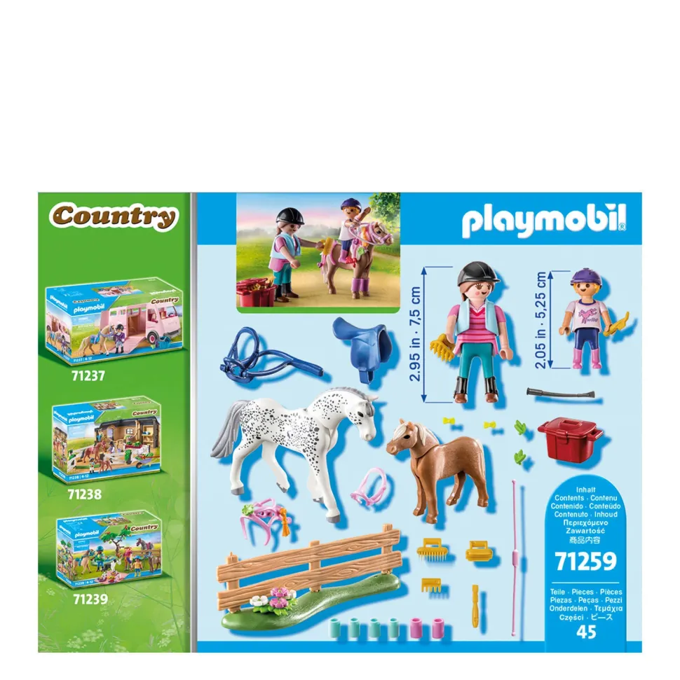 Paardensportfans Zullen Blij Zijn Met Het Playmobil Paardenverzorging Starterpack. De Liefdevol Ontworpen Speelgoedset Bevat Alles Wat Paardenliefhebbers Nodig Hebben Om Hun Pony Er Mooi Uit Te Laten Zien. Naast Strikken En Linten Kunnen De Manen En Staart Ook Worden Versierd Met Bloemen En Hartjes. Na Afloop Gaan De Twee Ruiters Natuurlijk Ook Op Reis Met Hun Favoriete Dieren. Een Kleurrijke Set Voor Kinderen Vanaf 4 Jaar. De Set Bevat Twee Playmobil-Figuren, Een Pony, Een Paard, Verband, Zweep, Halster, Hoofdstel En Andere Extra’S Voor Paardenverzorging. Het Hoofddeksel Van De Figuren Kan Worden Verwijderd. Met De Geweldige Playmobil Starterpacks Kun Je De Kleurrijke Playmobil-Wereld Betreden. De Sets Bevatten Figuren En Accessoires Voor Populaire Playmobil-Themawerelden, Zijn Snel Op Te Zetten En Klaar Om Te Spelen.