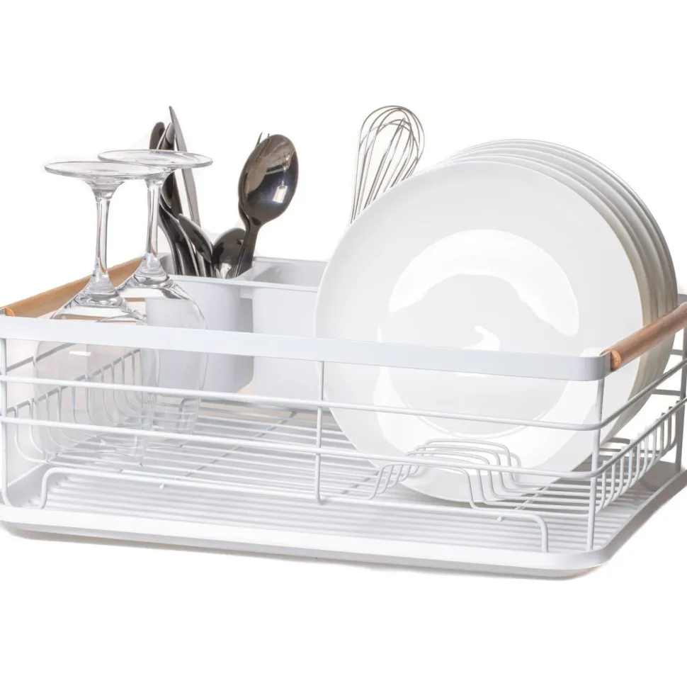 Laat Je Afwas Afdruipen In Dit Trendy Afdruiprek. Aan De Onderkant Zit Een Los Plateau Dat Het Water Opvangt, Deze Is Gemakkelijk Leeg Te Maken. Dit Afdruiprek Wordt Geleverd Inclusief Een Bestekbakje Verdeeld In Twee Vakken, Het Is Mogelijk Om Het Bestekbakje Te Bevestigen Aan De Zijkant Van Het Rek Waardoor Je Je Bestek Gemakkelijk Sorteerd.