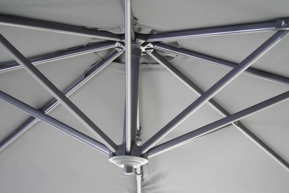Geniet Van De Schaduw Met Deze Honolulu Parasol Van Het Merk Sens-Line. De Antraciet Kleurige Parasol Is Voorzien Van Een Aluminium Frame, Een Sterk 180 Gram Polyester Doek En Acht Stabiele, Stevige Armen. Dankzij Het Draaihendel Is De Grote Parasol Gemakkelijk Te Openen. Het Doek Is Spat Waterdicht. De Parasol Wordt Geleverd Inclusief Kruisvoet, Exclusief Tegels.