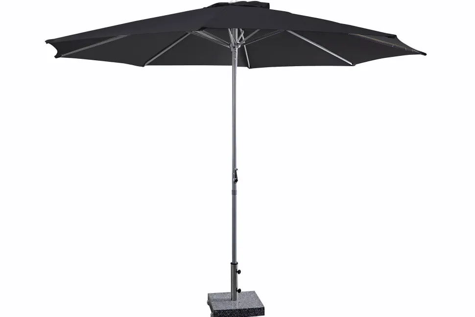 Deze Sens-Line Parasol Is Gemaakt Van Een Aluminium Frame Gecombineerd Met Gepoedercoat Metaal En Heeft Een 180 Grams Polyester Doek. De Zwarte Parasol Is Spatwaterdicht, Voorzien Van Een Draaihendel En Heeft Acht Stevige Baleinen Aan De Bovenzijde. Dankzij De Buis Met Een Dikte Van 38 Mm Past Deze Parasol In Vrijwel Alle Parasolvoeten.