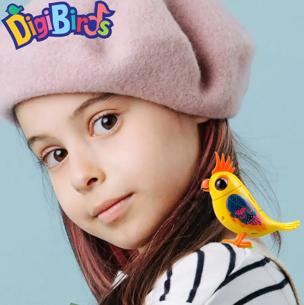De Vrolijke Digibirds Zijn Eindelijk Terug!! Ze Zijn Groter En Nog Levendiger Dan Vroeger. We Zijn Terug En Willen Graag Met Jou Spelen! Aai Me En Ik Zal Tweeten. En Als Je Naar Me Fluit, Zal Ik Mijn Favoriete Melodietjes Voor Je Zingen. Je Kunt Zelfs Tegen Mij Praten En Ik Zal Op Jou Reageren! Zet Ander Digibirds In Mijn Buurt En We Zullen Met Elkaar Verbinden En Samen Dansen En Zingen In Een Koor! De 100% Plasticvrije Verpakking Met Try Me Functie Dient Als Vogelhuisje Waar Je Je Digibird In Kunt Zetten. Hang Alle Vogelhuisjes Aan De Muur En Maak Je Eigen Decoratieve Digibirds Wand! Alle Digibirds Komen Van Een Ander Exotisch Deel Van De Wereld, Kun Jij Onze Unieke Persoonlijkheden Ontdekken? Een Ding Hebben We Gemeen, We Willen Allemaal Rondreizen Op Jouw Schouder! Inclusief Een Clip Om Je Digibird Op Te Zetten En Overal Mee Naartoe Te Nemen. Er Zijn 6 Verschillende Digibirds Te Verzamelen. Batterij Informatie: 1 X Aaa Batterij (Meegeleverd). Leeftijdsindicatie: 3 Jaar+.