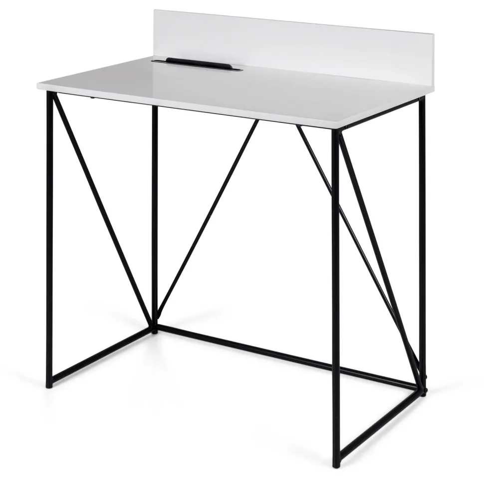 Het Bureaublad Van Het Tell Bureau Is Gemaakt Van Wit Gelakt Mdf. Het Onderstel Is Van Metaal Met Zwarte Lak.
