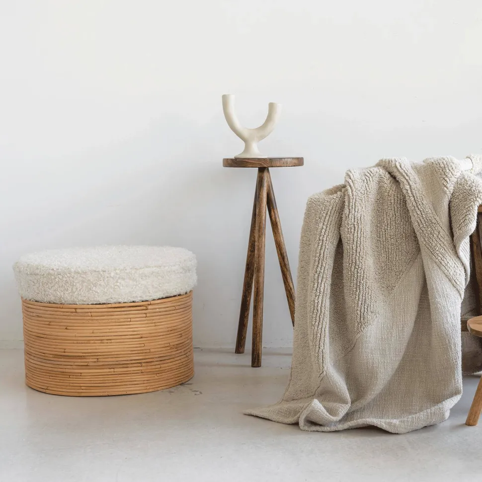 Een Moderne Vertaling Van Een Traditioneel Ambacht, Urban Nature Culture Presenteert Met Trots De Poef Rotan & Sherpa – Verkrijgbaar Met Een Bijpassend En Afneembaar Kussen Van 100% Katoen. Het Is Gemaakt Van Rotan En Neemt Je Mee Op Een Denkbeeldige Reis Naar Een Van De Bruisende Steden In Azie, Precies In Je Stedelijke Huis. Het Is Een Geweldige, Extra Zitplaats, Voetenbank Of Plek Om Je Voeten Te Laten Rusten Na Een Lange Dag Op Het Werk. Maar Er Is Meer Aan De Hand. Haal Het Kussen Eraf En Je Kunt Er Je Tijdschriften, Plaids Of Andere Schatten In Opbergen. Thuis Is Waar De Poef Is – En Een Mooie, Uitnodigende Ook. De Poef Is Handgemaakt In Indonesie, Met Een Bijpassend Kussen Uit India.